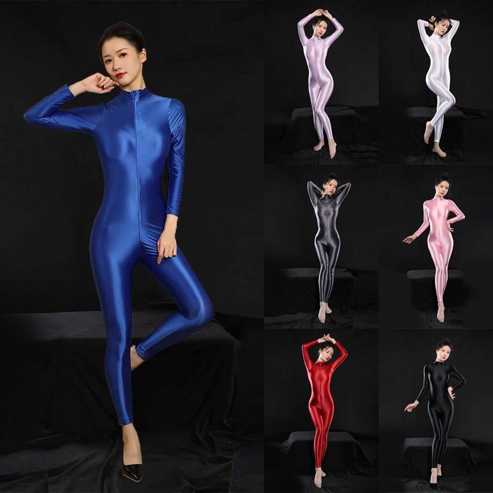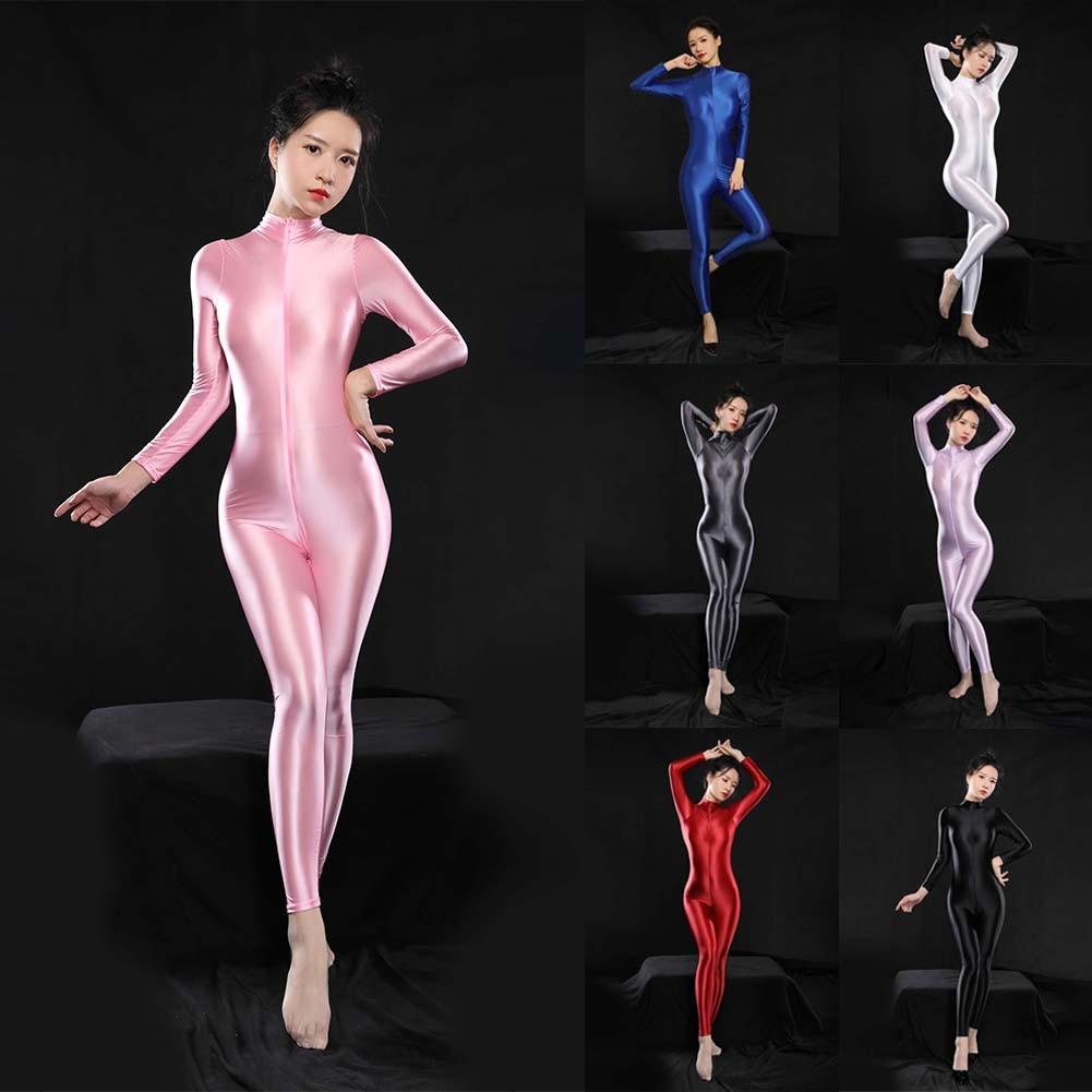 * Особенности элемента:Женское сексуальное нижнее белье с длинным рукавом на молнии Колготки Глянцевые чулки Комбинезон Масляная пижама Ночная одежда