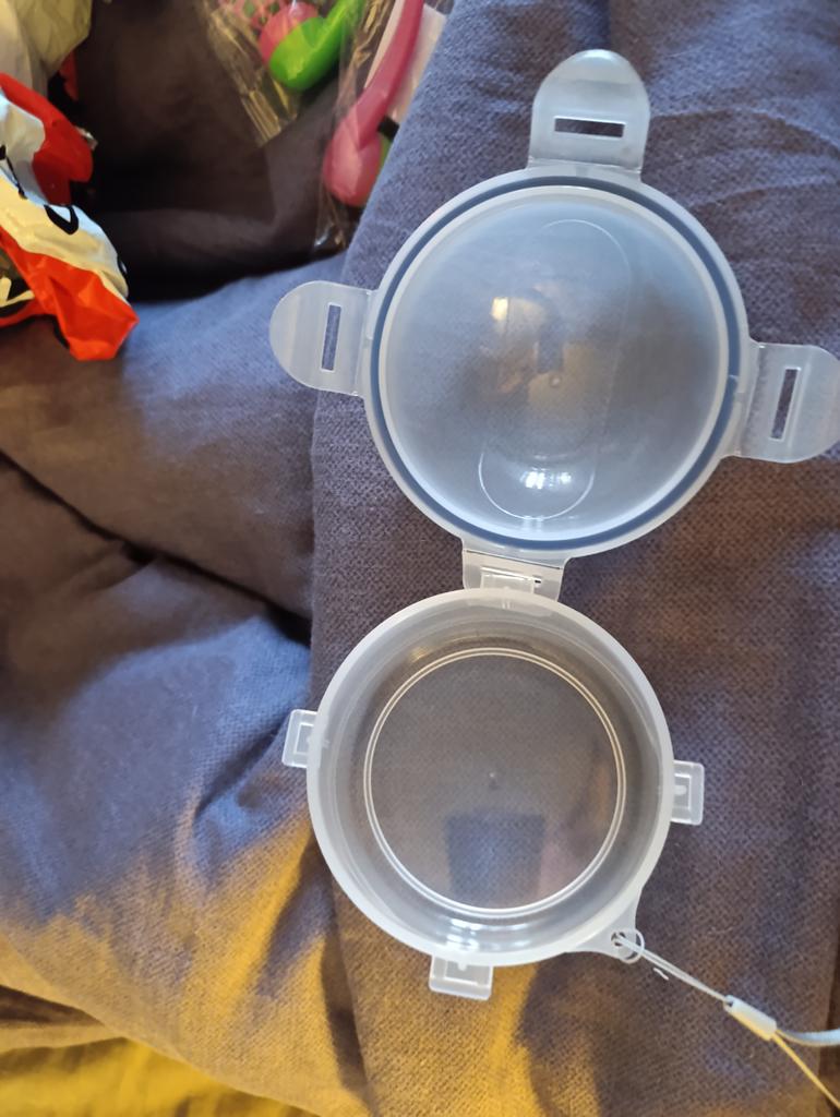 Смотрится стильно! Пластмасса плотная, закрывается удобно и плотно. В холодильнике для лимона. Удобно на прогулке с детьми, помыть немного винограда или яблоко, или персик положил и пошел гулять.