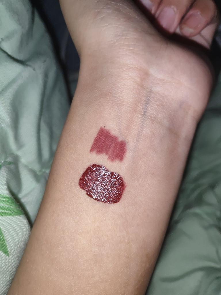 Эта помада очень стойкая , я ее стирала с руки три минуты . Продукта в самом карандаше не так много как хотелось бы . Но за эту цену девочки супер комбо