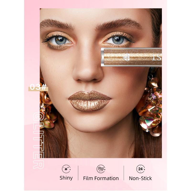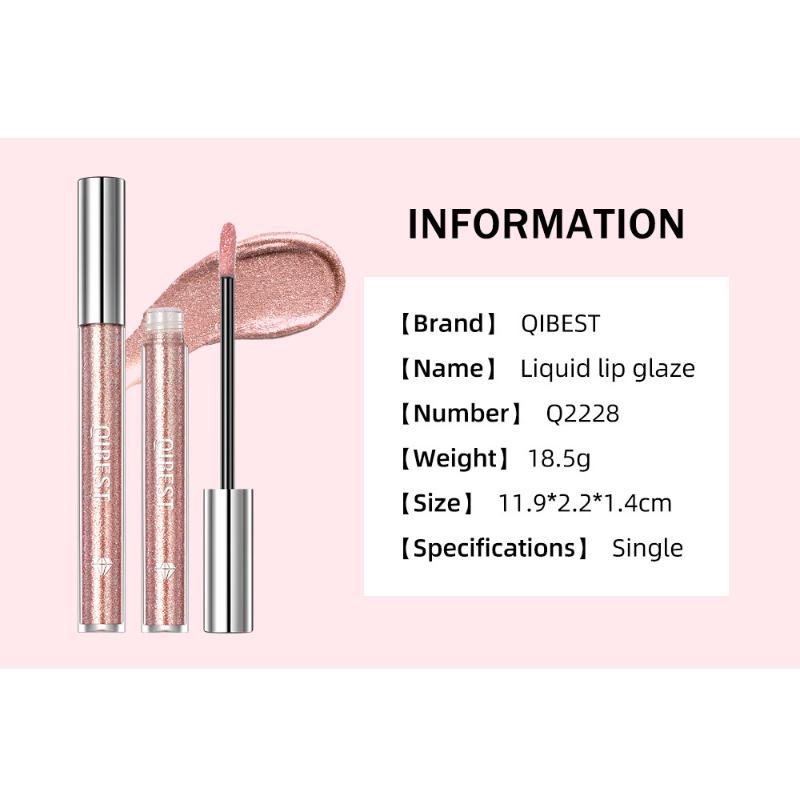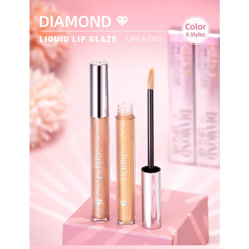 QIBEST Жидкая губная помада с бриллиантами, тени для век, двойного назначения, макияж, долговечный легкий цвет, перламутровый блеск, антипригарная глазурь для губ