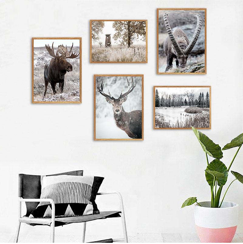 Скандинавский постер и принт, зимний природный пейзаж, холст, картина, пиво, олень, животное, настенная картина, скандинавский стиль, домашний декор, без рамки — купить товар онлайн с бесплатной доставкой по всему миру!