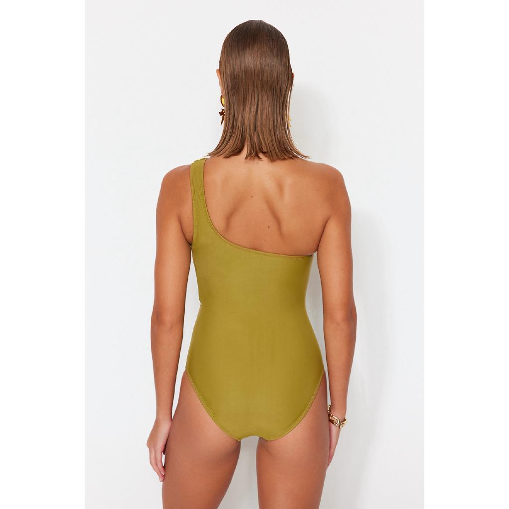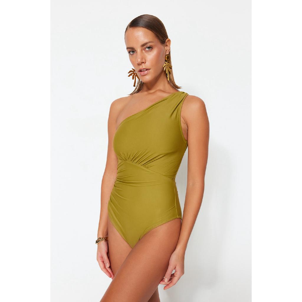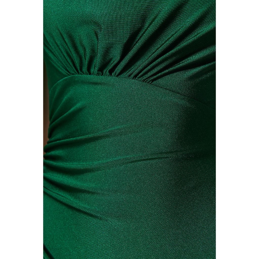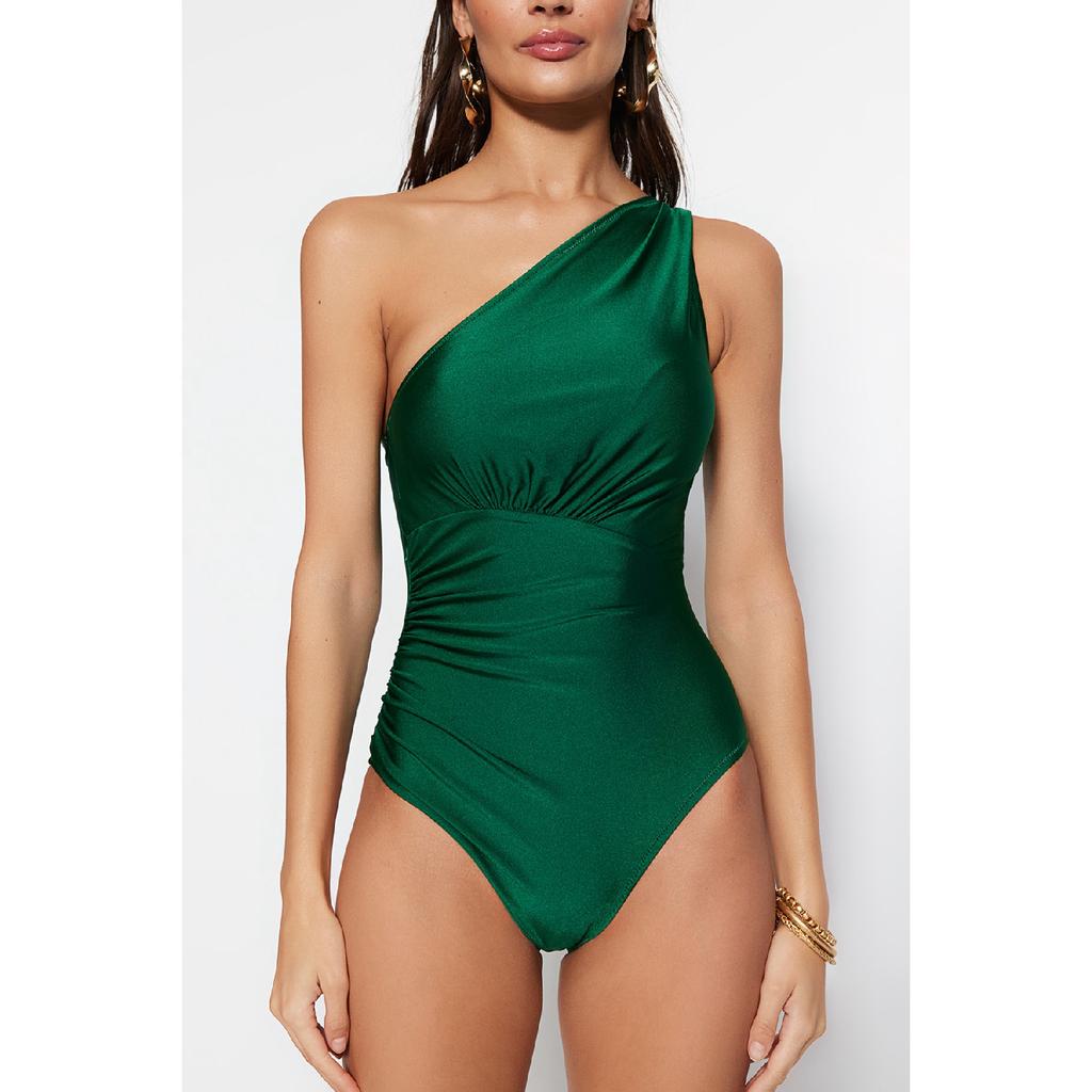Изумрудно-зеленый купальник на одно плечо с драпировкой Tbess21ma0143