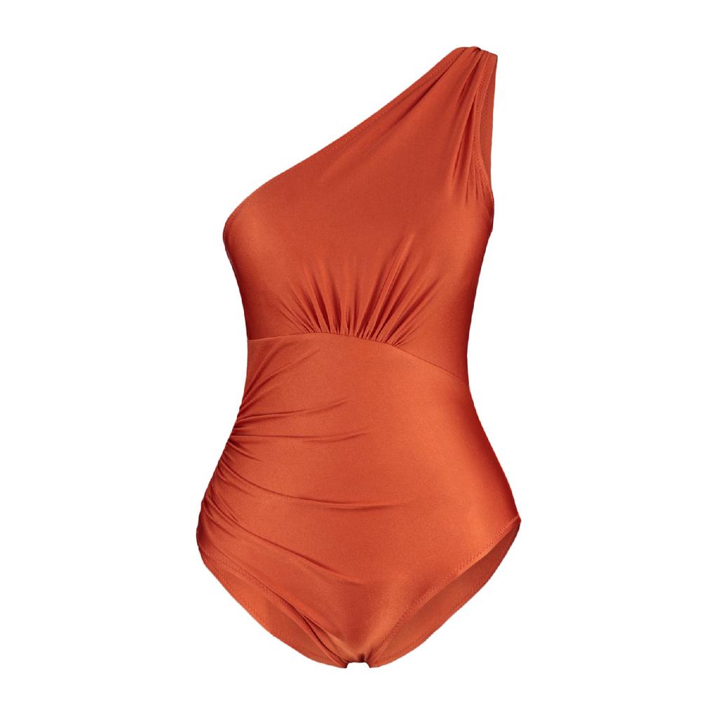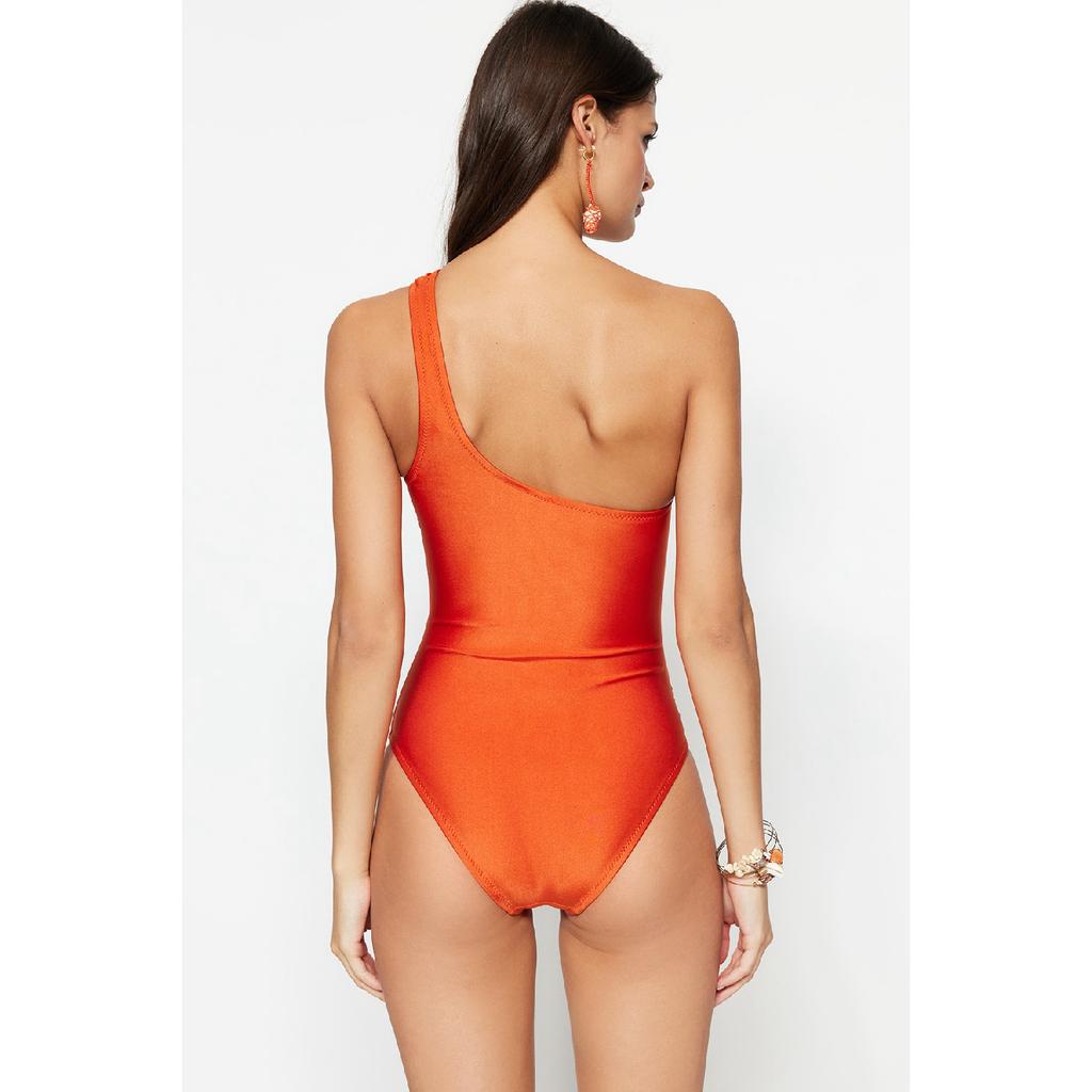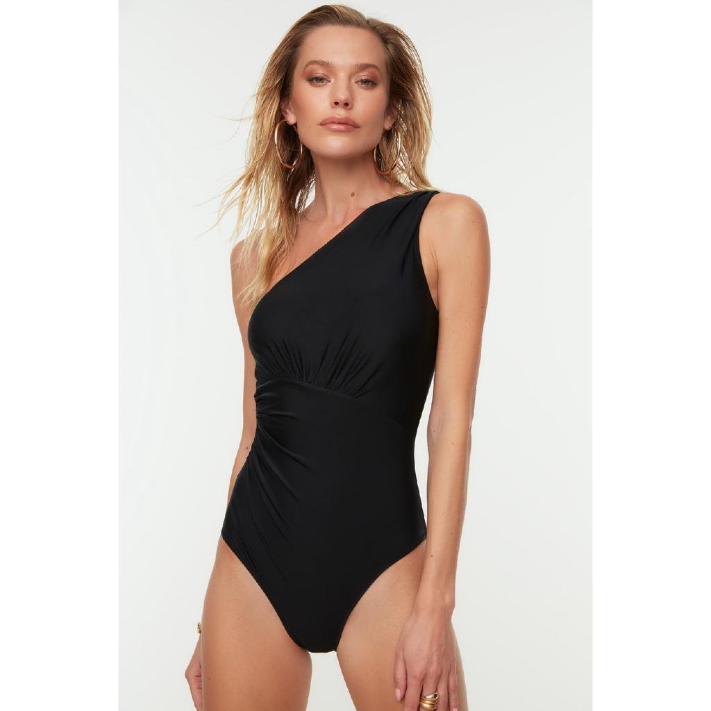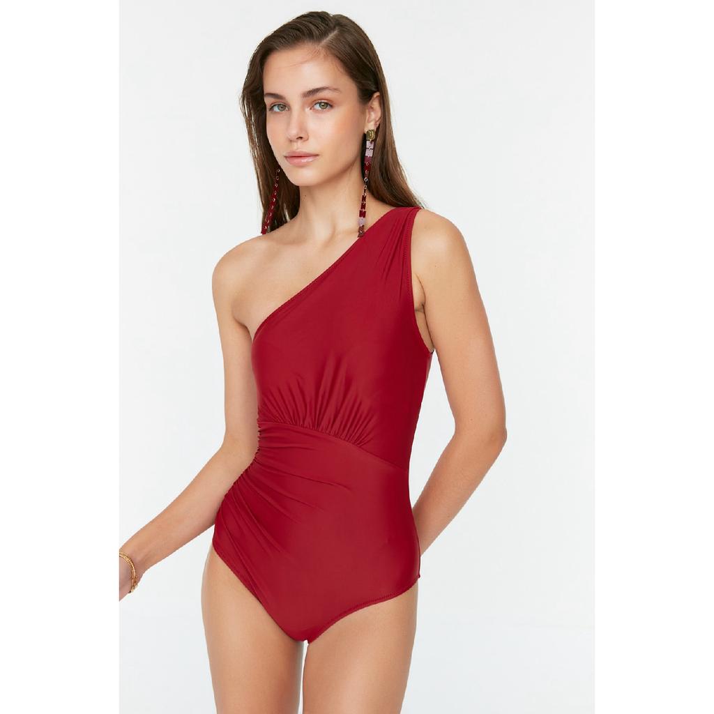 Изумрудно-зеленый купальник на одно плечо с драпировкой Tbess21ma0143