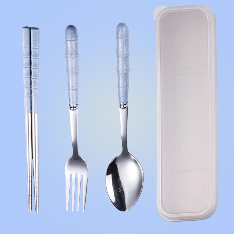 3 шт., ложка, вилка, палочки для еды, столовые приборы, портативный набор столовых приборов, столовые приборы для обеда с коробкой, набор столовых приборов из нержавеющей стали HMM