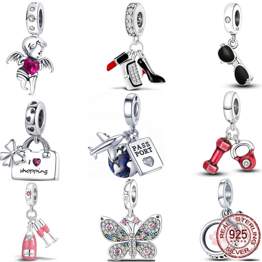 Новинка, гантель из стерлингового серебра 925 пробы, сумка для покупок и солнцезащитные очки, висячие подвески из бисера, подходят для милого модного браслета, модные ювелирные изделия, подарок