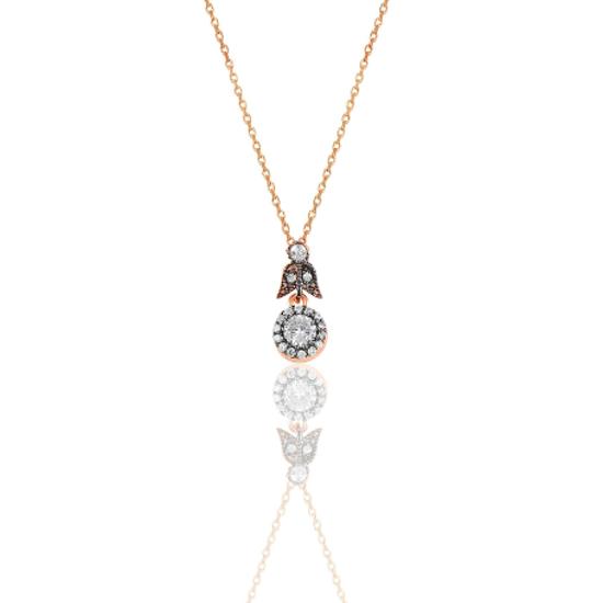 Gümüş rose elmas montürlü yuvarlak kolye.
