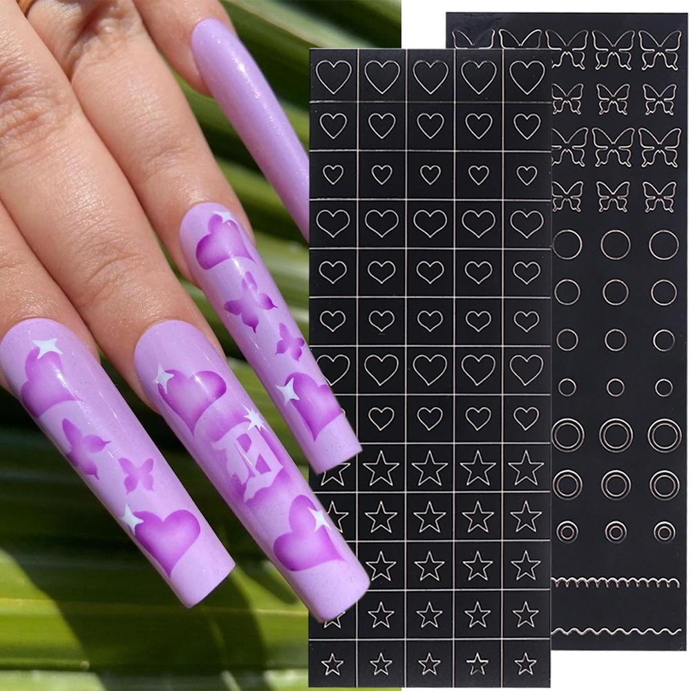 1 шт. дизайн ногтей сердце цветок бабочка выдалбливают трафаретные наклейки для ногтей распылением шаблоны для рисования переводная бумага ползунки ZPG