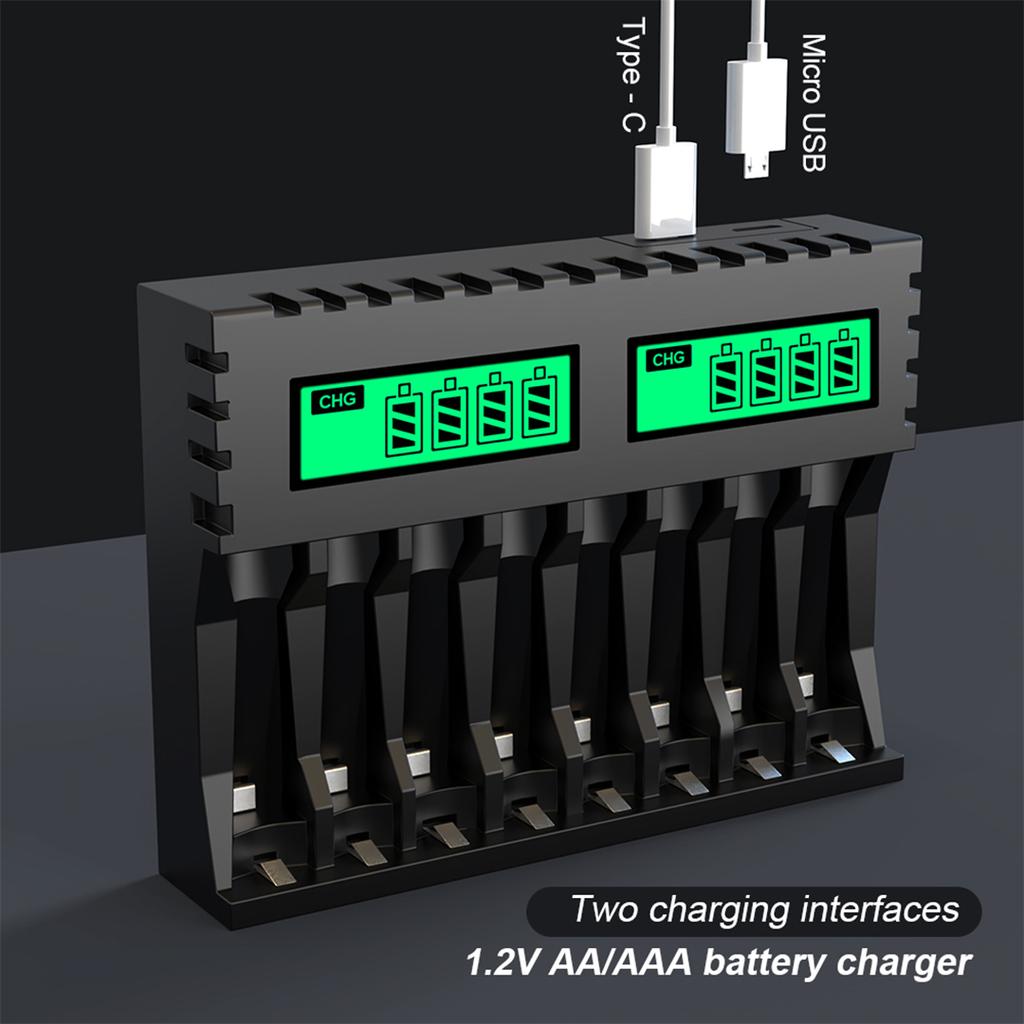 ЖК-дисплей Смарт Интеллектуальное Зарядное устройство для аккумуляторов с 8 слотами для 1,2 В AA AAA NiCd Ni-MH Перезаряжаемые батареи Зарядное устройство типа C — купить товар онлайн с бесплатной доставкой по всему миру!