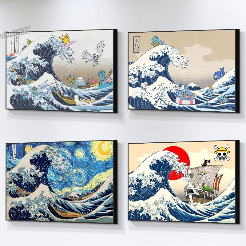 Большая волна в Канагаве, холст, картина, мультяшные большие волны, художественные постеры, японская известная живопись, настенные художественные фотографии, домашний декор — купить товар онлайн с бесплатной доставкой по всему миру!