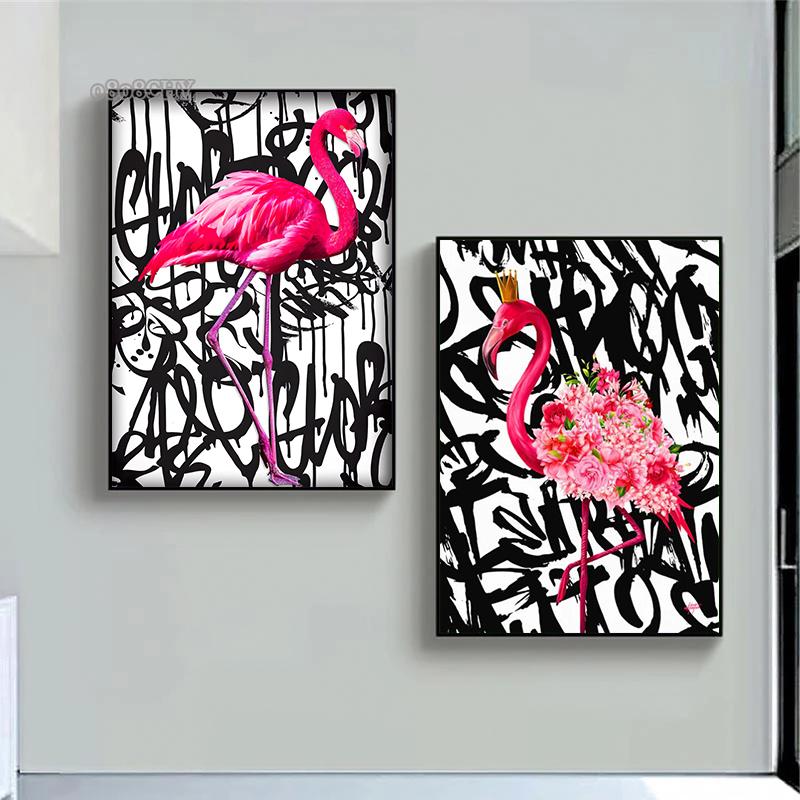 Скандинавское романтическое настенное искусство, розовый фламинго, граффити, художественная картина на холсте, постеры и принты, красивые фотографии животных для гостиной