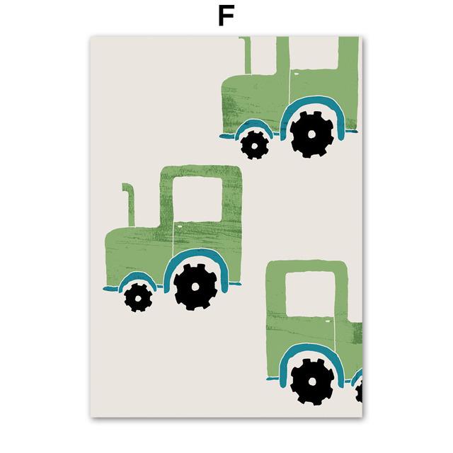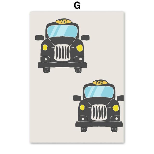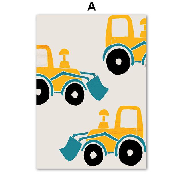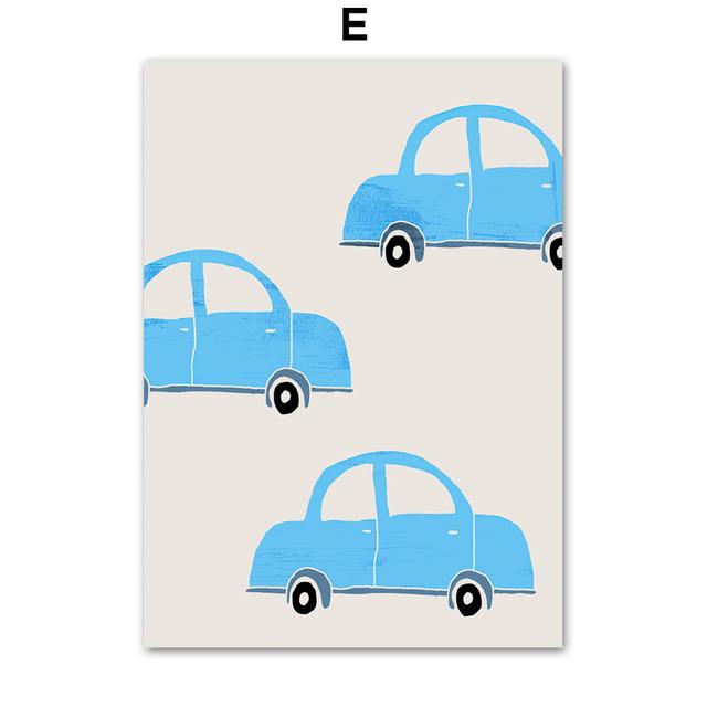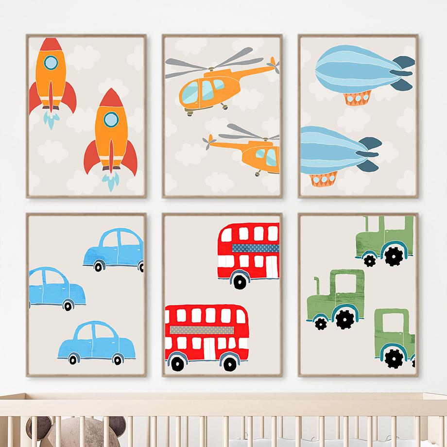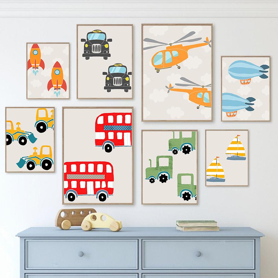 Мультяшный автомобиль, настенное искусство, вертолет, парусные ракеты, картина на холсте, скандинавские постеры и принты, настенные панно для детской комнаты, декор для детской комнаты, без рамки