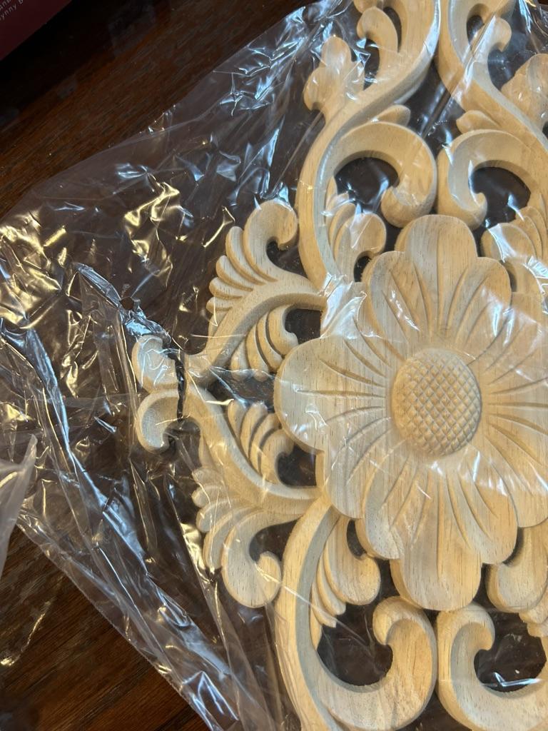 Красивая накладка, только с трещиной, видимо при доставке. Так очень нравится, но еще не приклеила на дверь.Ждем теплой погоды.