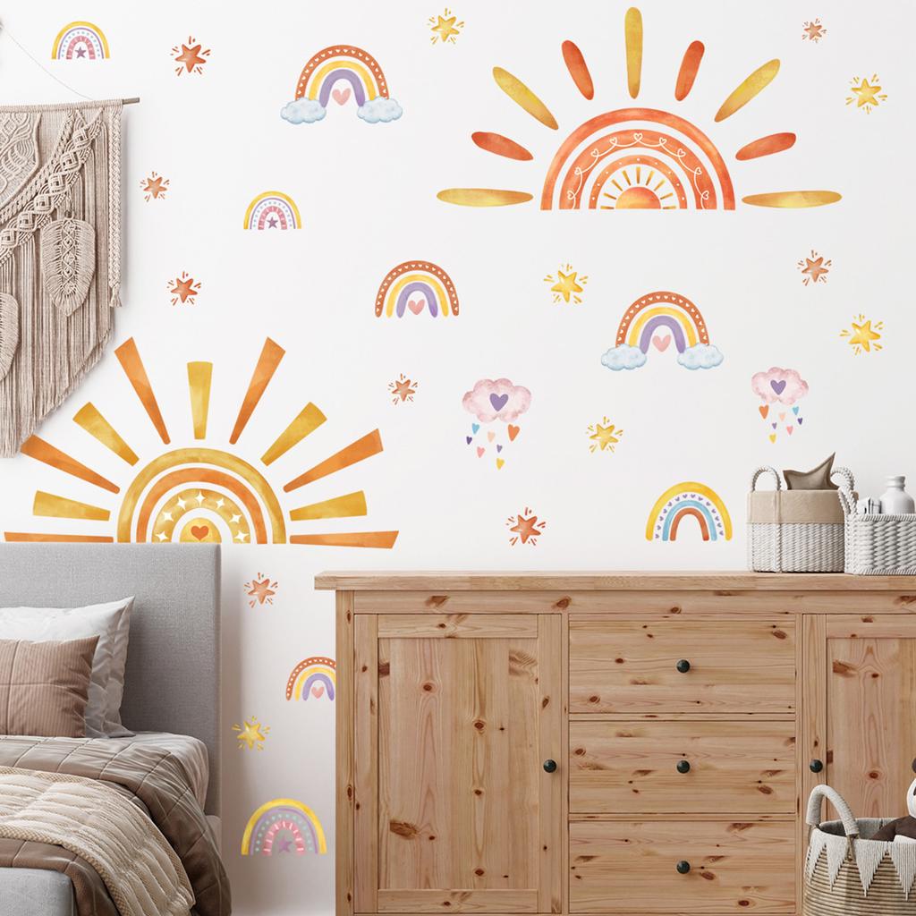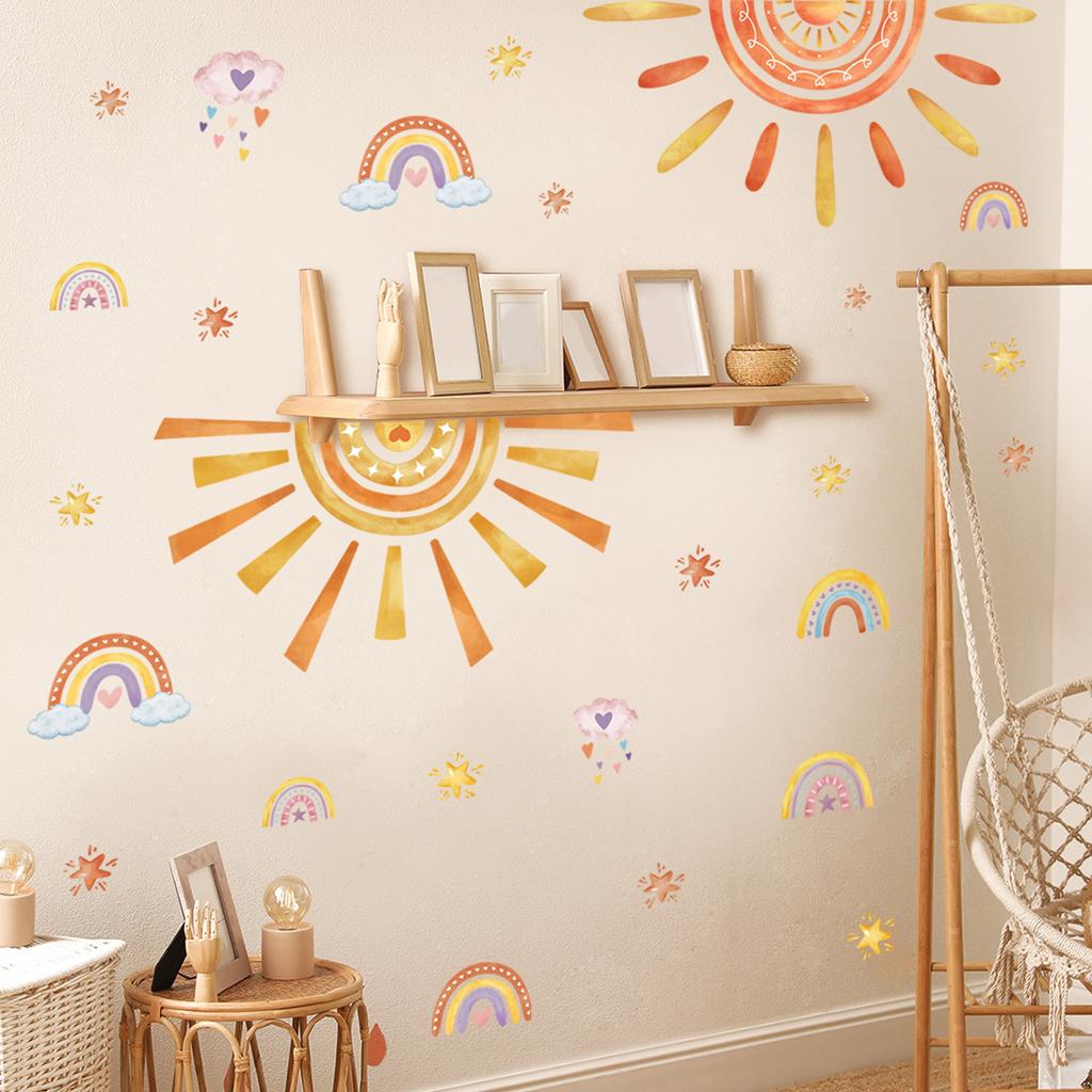 Создайте волшебное пространство: Вы получите 2 настенные наклейки размером 11,8x23,6 дюйма / 30x60 см с очаровательными радугами, сердцами, солнцами, облаками и звездами, которые превратят любую комнату в сказочную страну чудес.