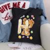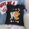 Женская парусиновая сумка-шоппер Harajuku, женская сумка большой вместимости, классическая винтажная сумка на плечо, милая сумка с узором медведя, большая сумка