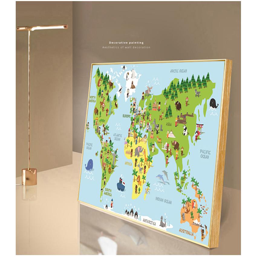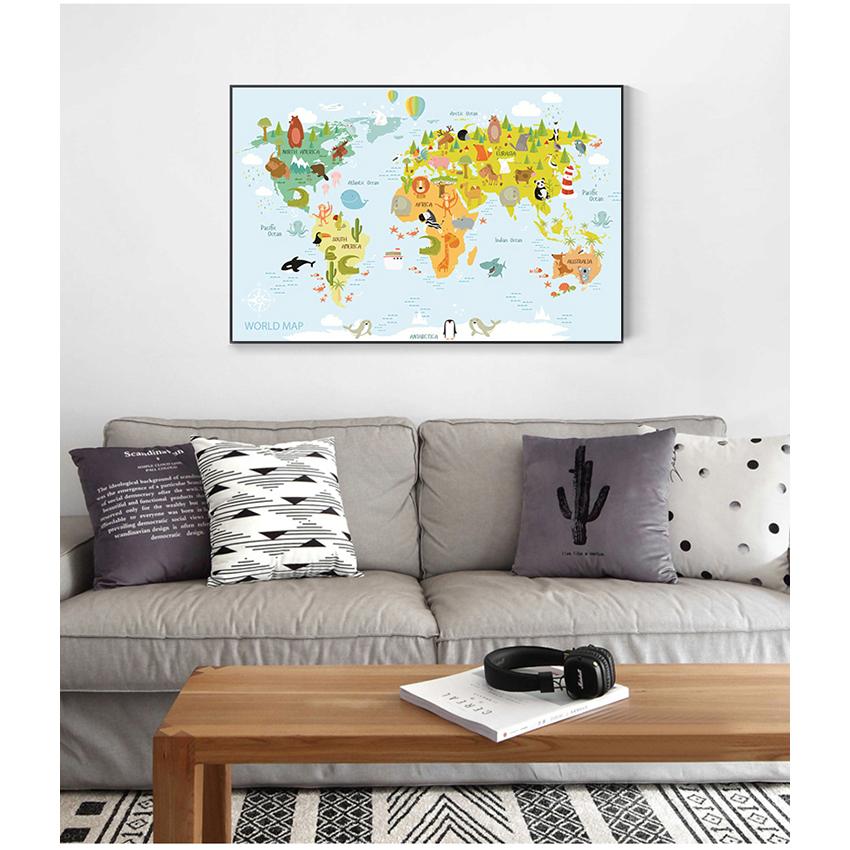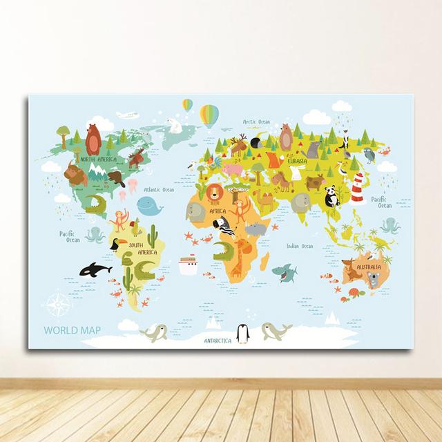 Художественная печать на холсте, картина для маленьких детей, украшение для спальни, морская жизнь, континенты, карта мира животных, детский постер, детская стена без рамки