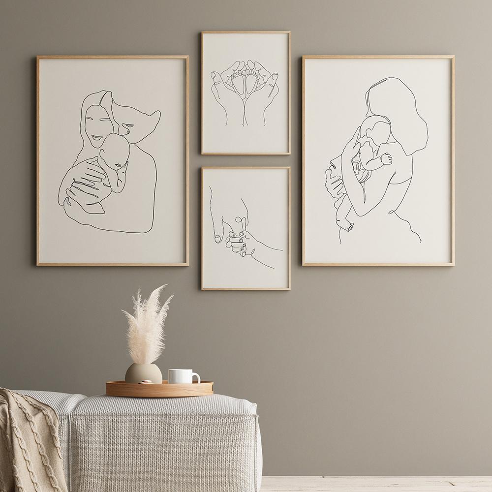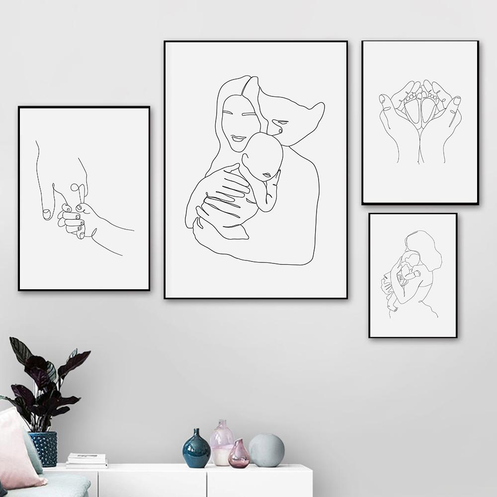 Абстрактная семейная любовь, холст, картина, детские ножки, настенное искусство, рисунок, линия, папа, мама, постеры и принты, детские картинки для гостиной