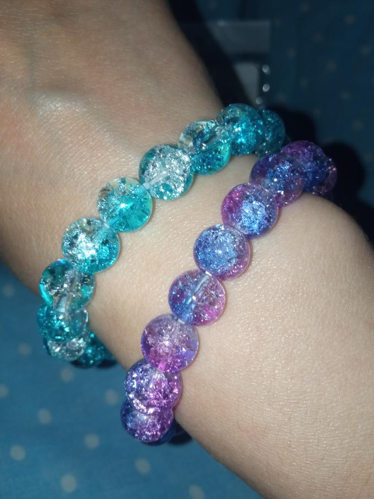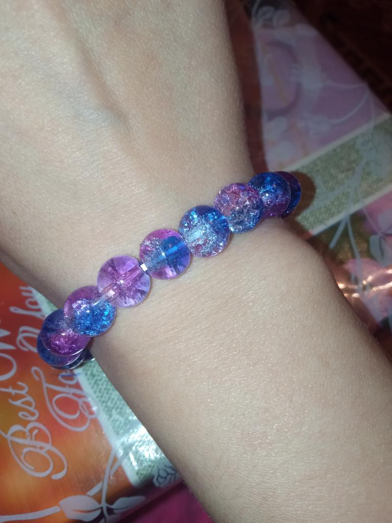 Красивый браслет, бусины в стиле "битое стекло", брала за 1₽ для акции 6+, двухцветный, цвет голубой с розовым, смотрится оригинально, без повреждений, продавцу спасибо🤗, рекомендую🥰
