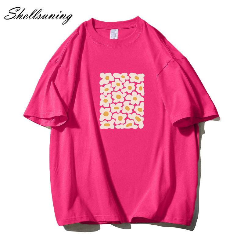 Shellsuning большие футболки с художественным принтом, женские летние модные винтажные мягкие уличные рубашки из 100% хлопка, одежда для пар, базовые футболки, женские топы в стиле Харадзюку