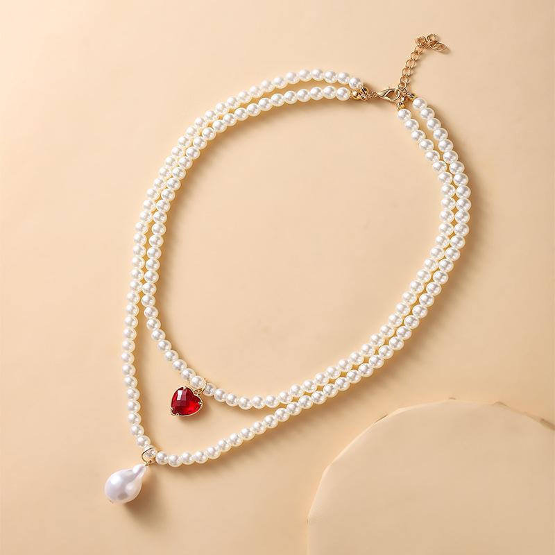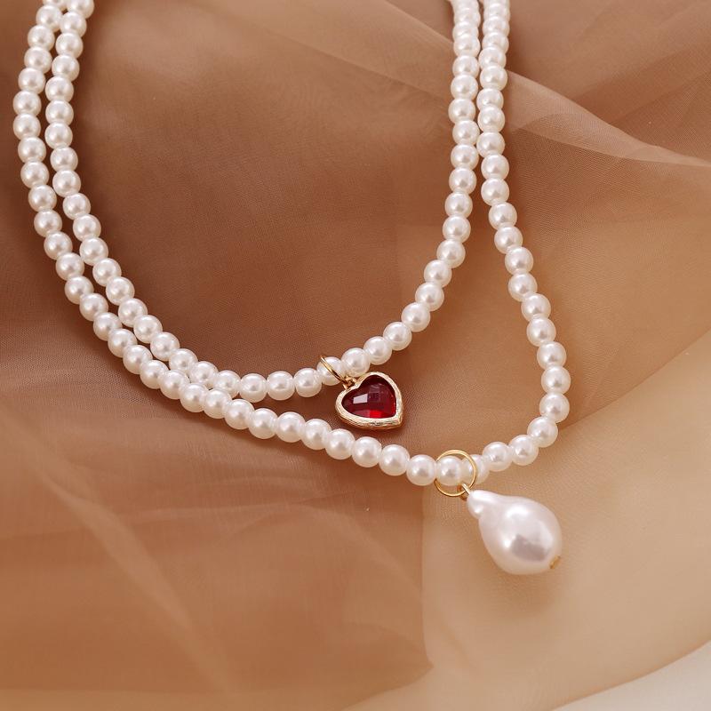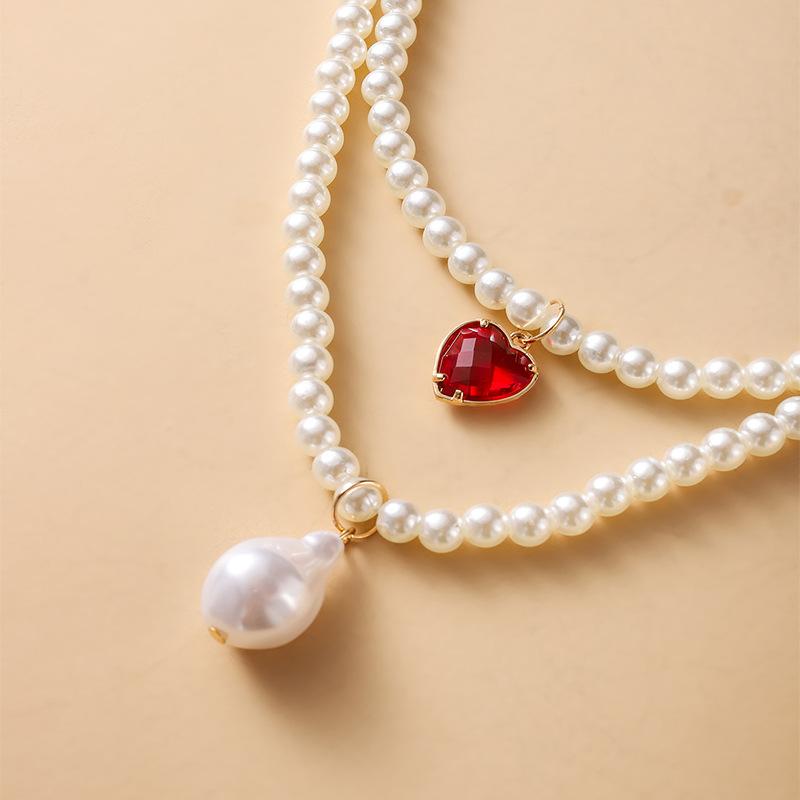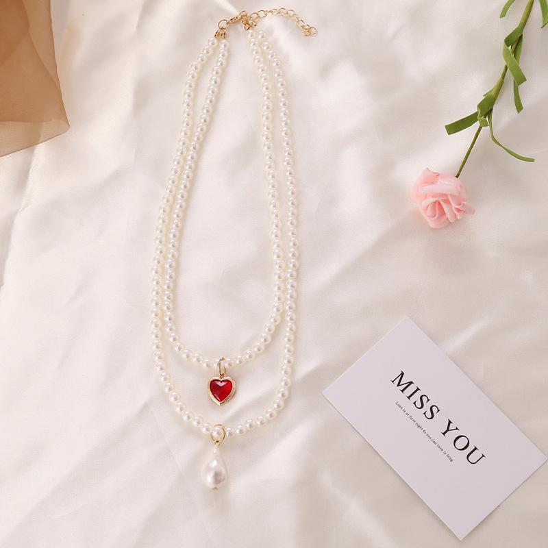 Кулон «Любовь» с искусственным жемчугом, двойное ожерелье, элегантные и милые украшения для девочек в стиле ретро