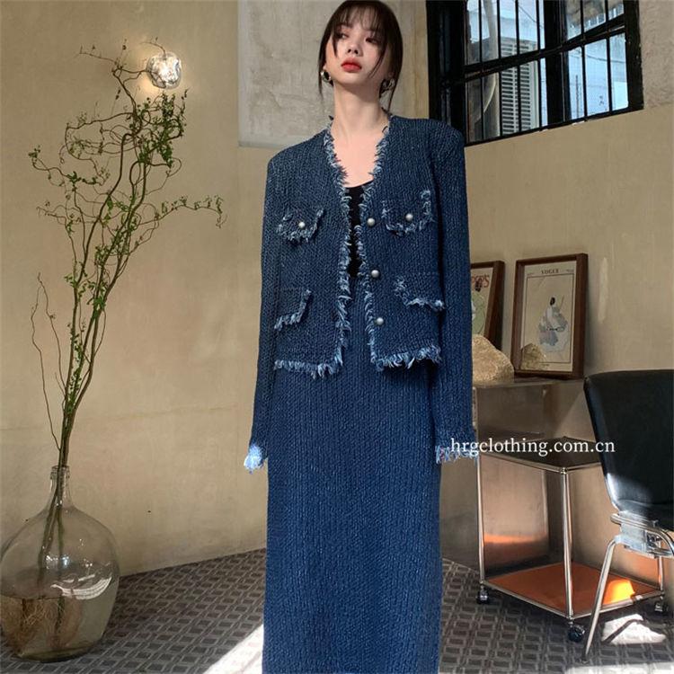 Комплект из двух предметов на пуговицах, твидовый наряд с кисточками, пальто, куртка с длинными рукавами и юбка-миди, костюм, женский модный повседневный осенне-весенне-осенний костюм — купить товар онлайн с бесплатной доставкой до всему миру!