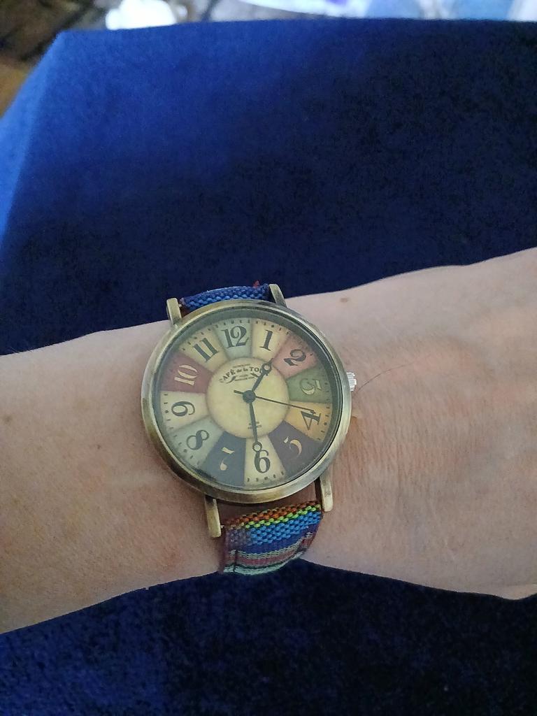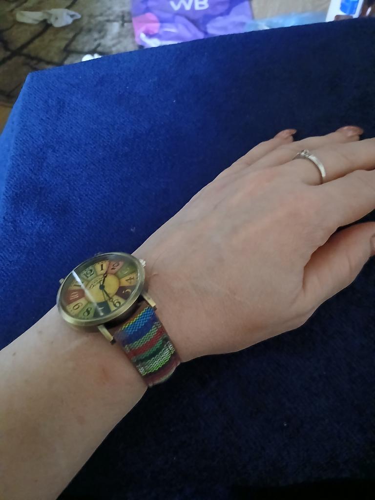 Часики класс))) правда батарейка севшая была, так как они шли) но ничего, уже заменила, идут нормально пока) очень красивые, правда думала, что ремешок полностью тканевый, но изнутри кожзам, полопается быстро, а так в целом очень даже ничего