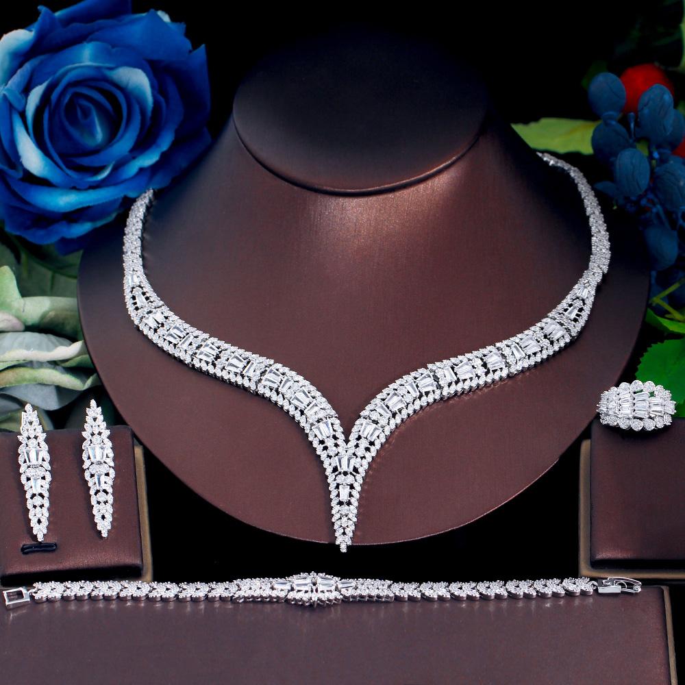 CMM 4 шт. Роскошные блестящие циркониевые женские свадебные ожерелья невесты праздничные бижутерия наборы аксессуаров — купить товар онлайн с бесплатной доставкой по всему миру!