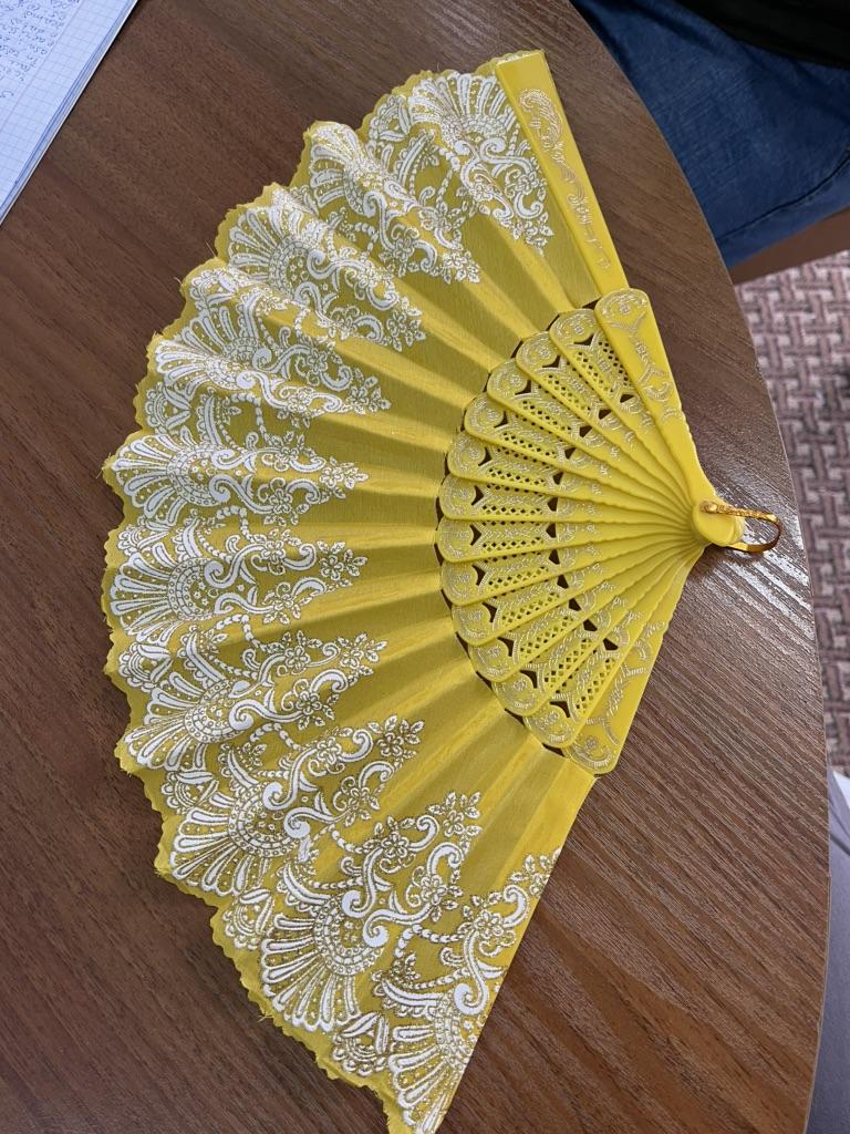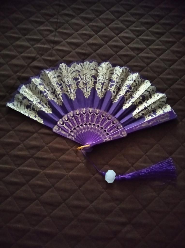 Брак. Клеили на коленке, вся ткань перепачкана клеем. Пластик был весь склеен между собой. Края мохнатые, распускается ткань. Рисунок - это печать краской. Ярко, очень... ... ширпотреб из цыганской лавки на колесах Веер дешево смотрится. И при всем этом, функцию свою выполняет. Особенно для сцены подойдет, хорошо его будет видно издалека. Для танцев тоже отлично будет смотреться. Но, это только мое мнение.