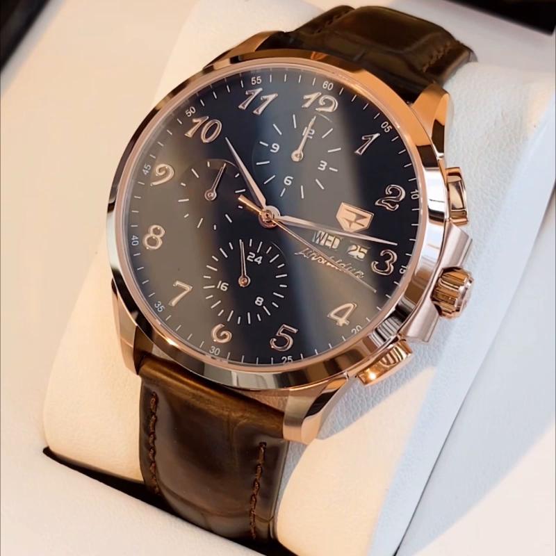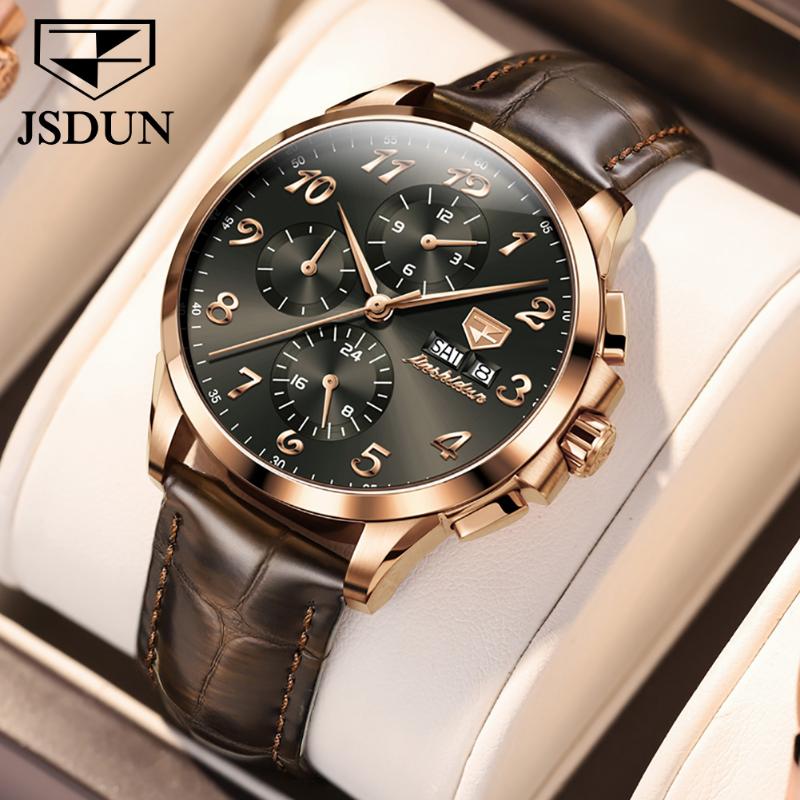 JINSHIDUN Новые мужские часы для бизнеса и отдыха, многофункциональные часы с двойным календарем, полностью автоматические механические высококачественные мужские часы
