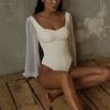 Женское боди с рукавами-фонариками, модный комбинезон с квадратным воротником и открытой спиной, с длинными рукавами — купить товар онлайн с бесплатной доставкой до всему миру!
