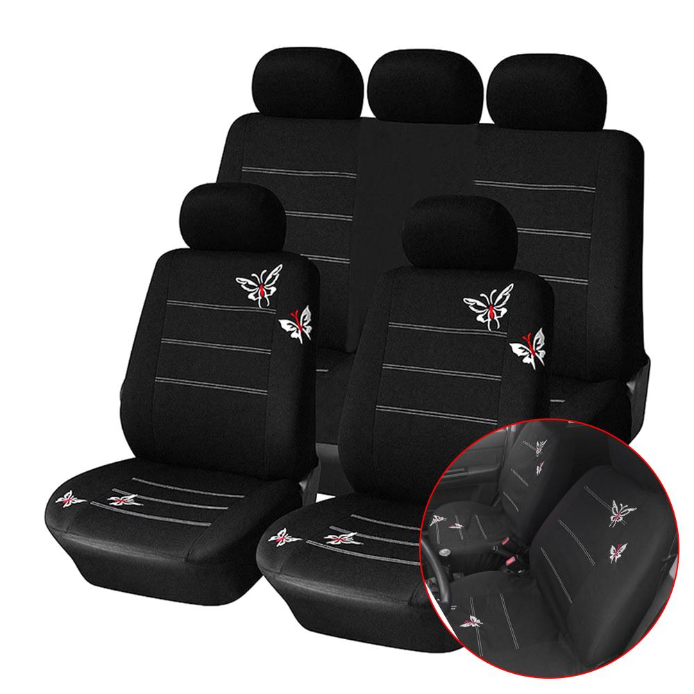 Автомобильные чехлы с вышивкой бабочки, коврик для защиты, универсальный подходит для грузовика, внедорожника, фургона, защитная подушка для автомобильного сиденья, передние и задние чехлы для автомобильных сидений, комплект из 4/9 шт. — купить товар онлайн с бесплатной доставкой по всему миру!