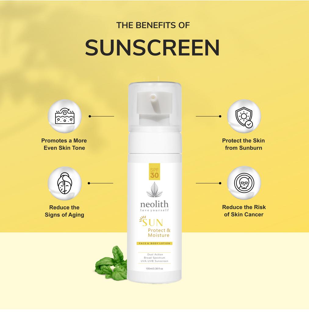 Neolith SPF 30 Sun Protect & Moisture Face & Body Lotion — это продукт по уходу за кожей, разработанный для защиты от солнца, питания и увлажнения кожи.. Он сочетает в себе преимущества нескольких натуральных экстрактов, обеспечивая освежающий и эффективный уход за кожей.