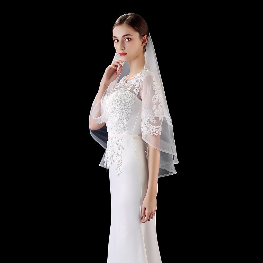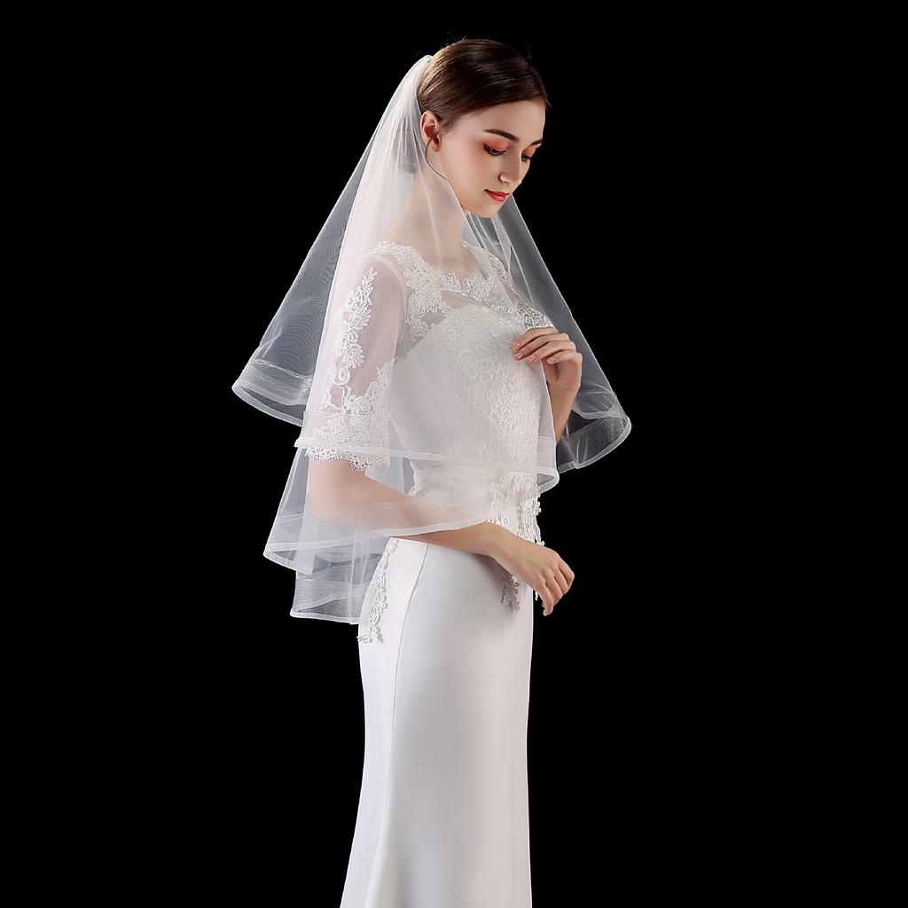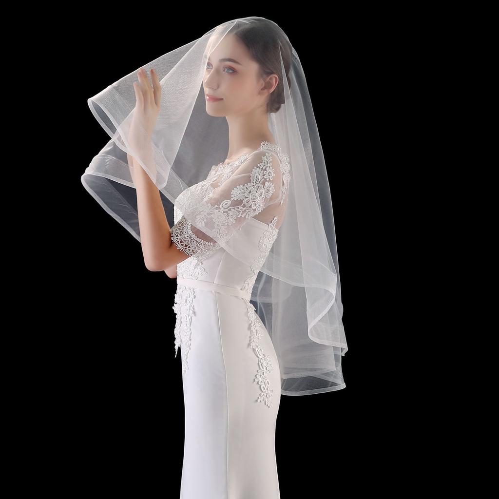 Короткая однослойная фата Свадебные аксессуары Простая эластичная сетчатая кайма чистого белого бежевого цвета