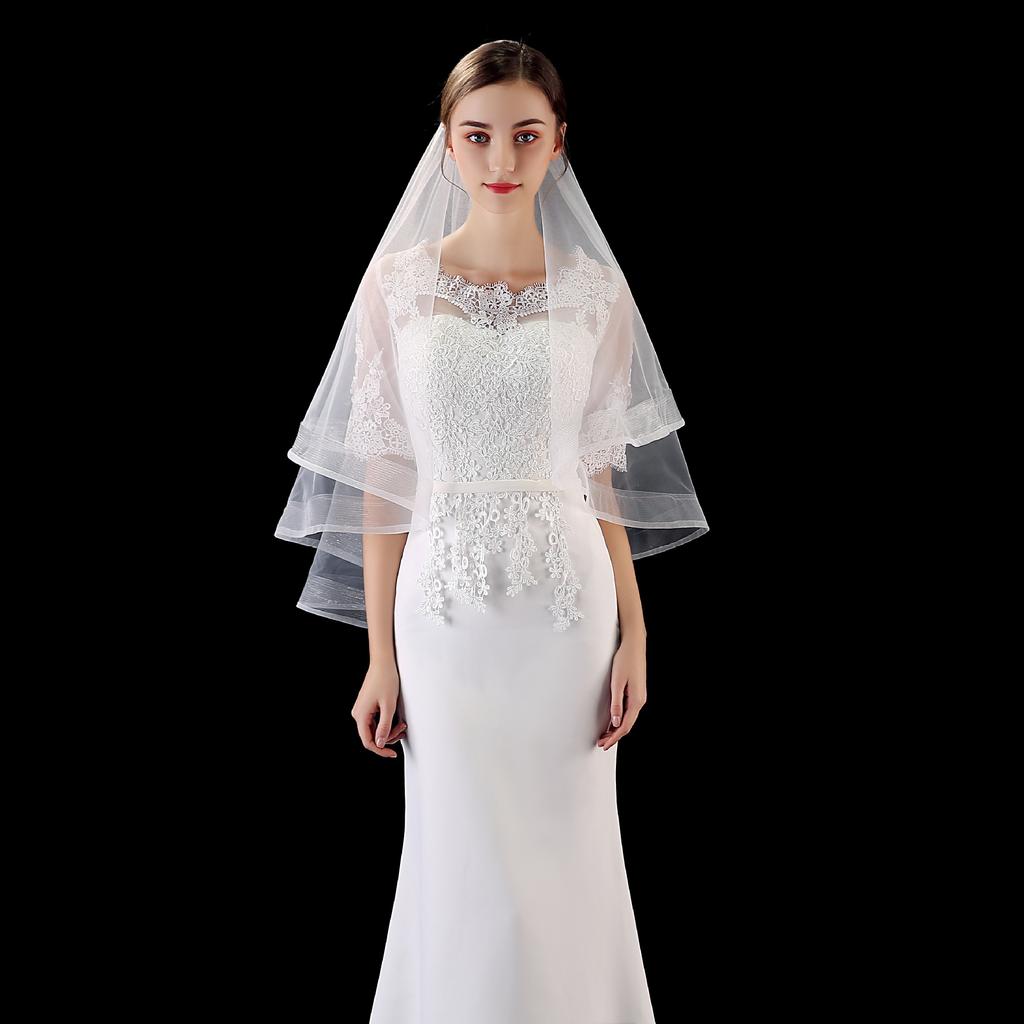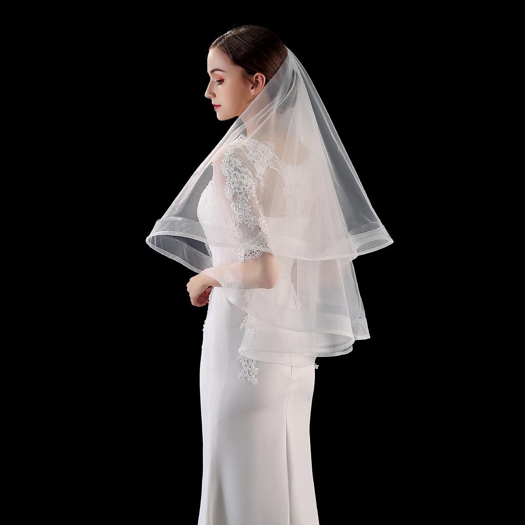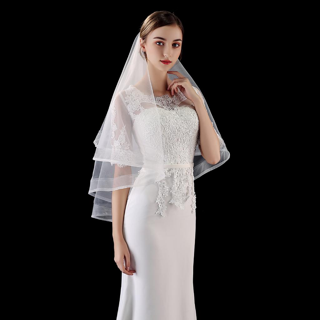 Короткая однослойная фата Свадебные аксессуары Простая эластичная сетчатая кайма чистого белого бежевого цвета