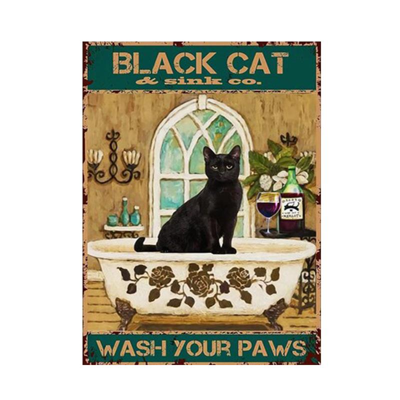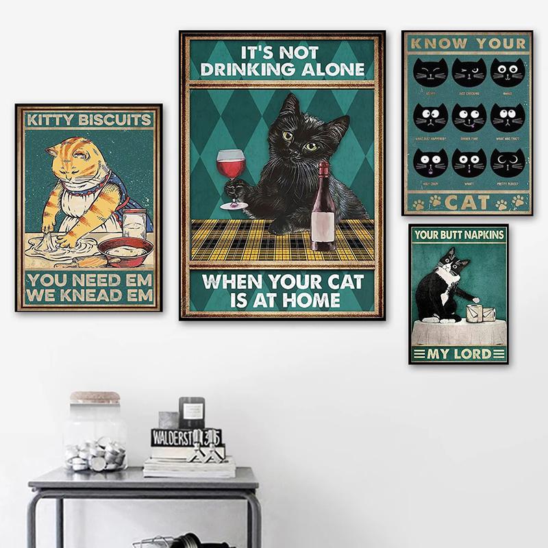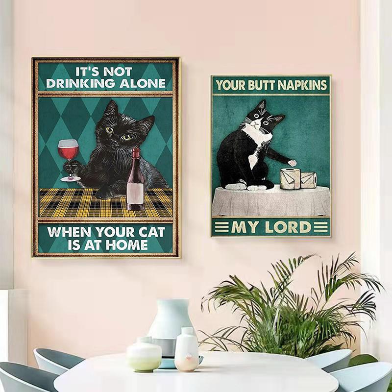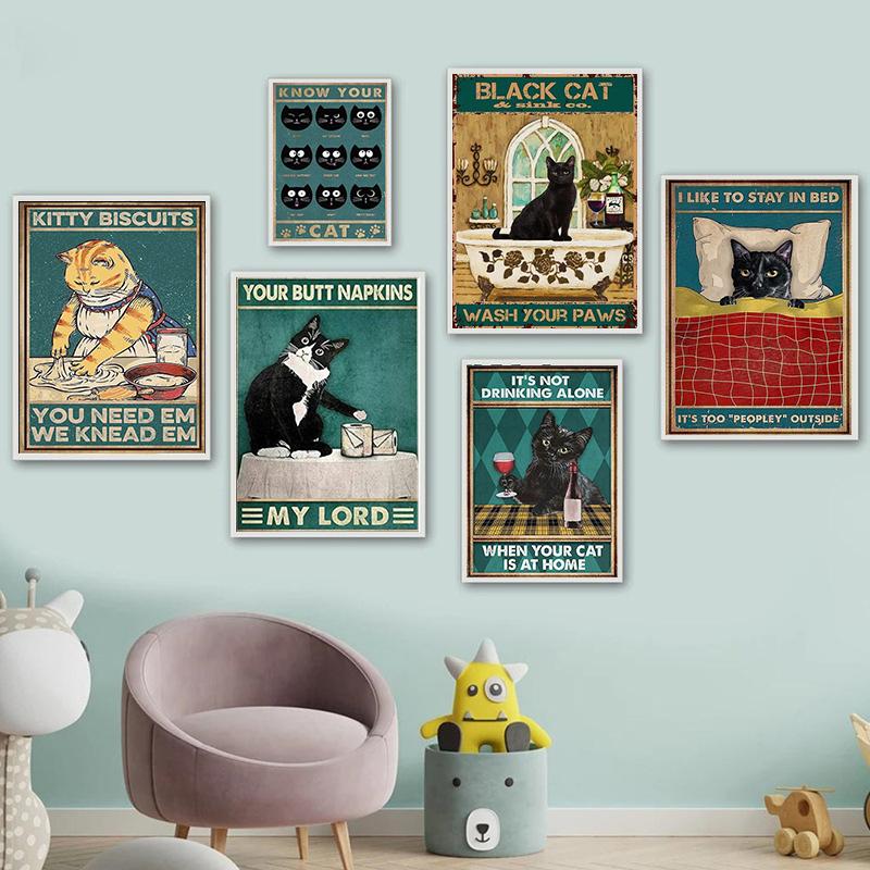 Черный кот, настенное искусство, винтажный постер и принты, холст, картина, кошка, любовь, пьющая настенные украшения, фотографии для домашнего декора, подарок