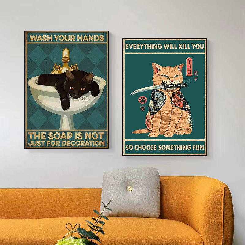 Забавное животное, настенная живопись на холсте, необычный сладкий кот, холст, художественный постер и принты для ванной комнаты, гостиной, домашний декор, фотографии
