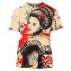 3D футболка для мужчин, топы с короткими рукавами в японском стиле и принтом гейши, мужские футболки с круглым вырезом, футболка большого размера, мужская одежда