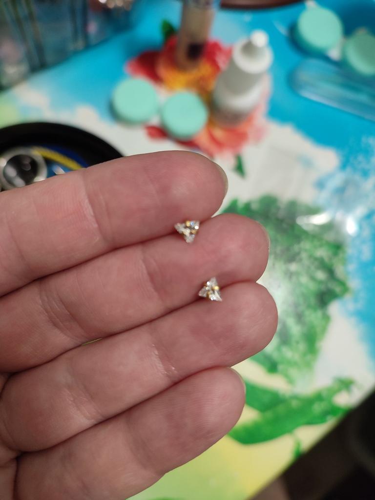 Сережки небольшие, аккуратные и оригинальные. На небольшие ушки. На работе коллеги все отметили, что они необычные и очень красиво блестят. Спасибо ❤️ большое продавцу и Джуму. Застежечки крепкие, все супер!