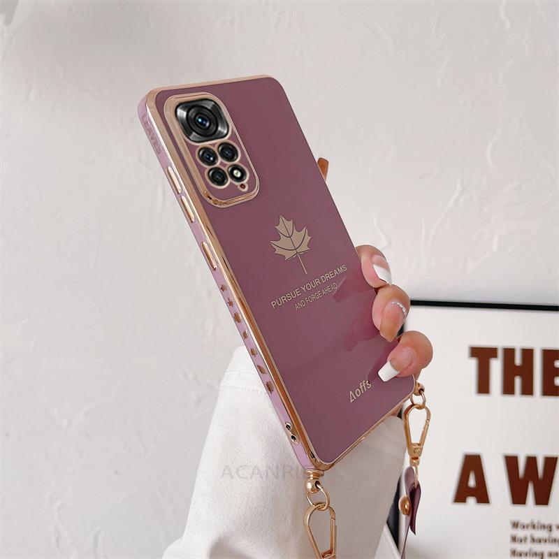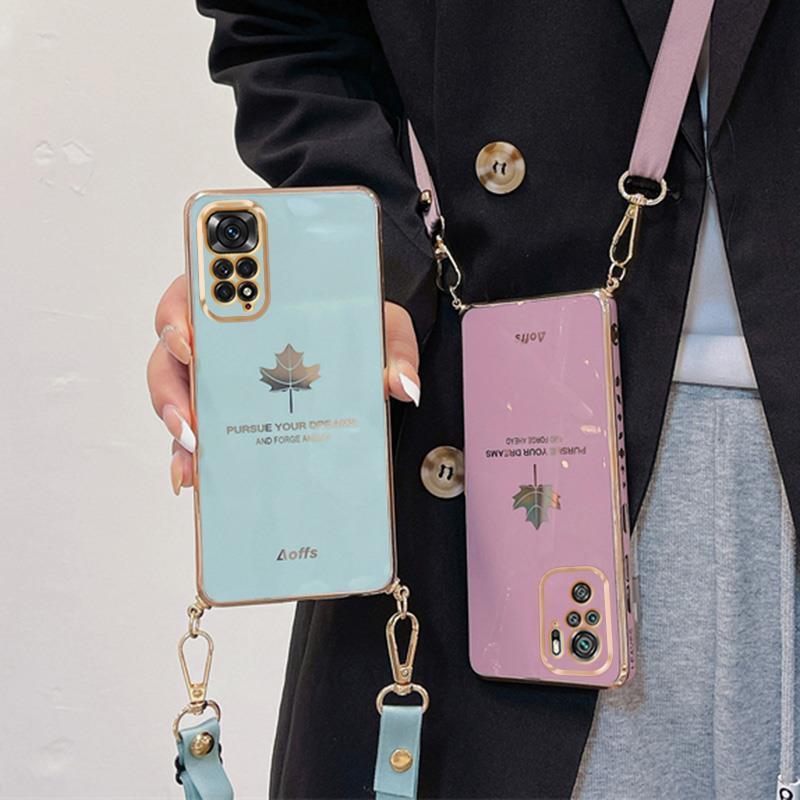 Ремешок через плечо с покрытием из кленового листа, чехол для Redmi 10 9 9A 9T Note 11 10s/Samsung S22 S21 S23 Ultra A13 A23 A33 A53 A22 A32 A52 A14 A54/крышка из ТПУ