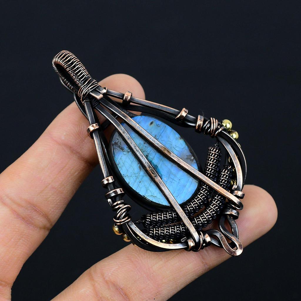 Лабрадорит Драгоценный камень Чистая медная проволока Обернутый дизайнерский кулон ручной работы Ювелирный подарок