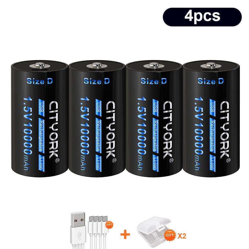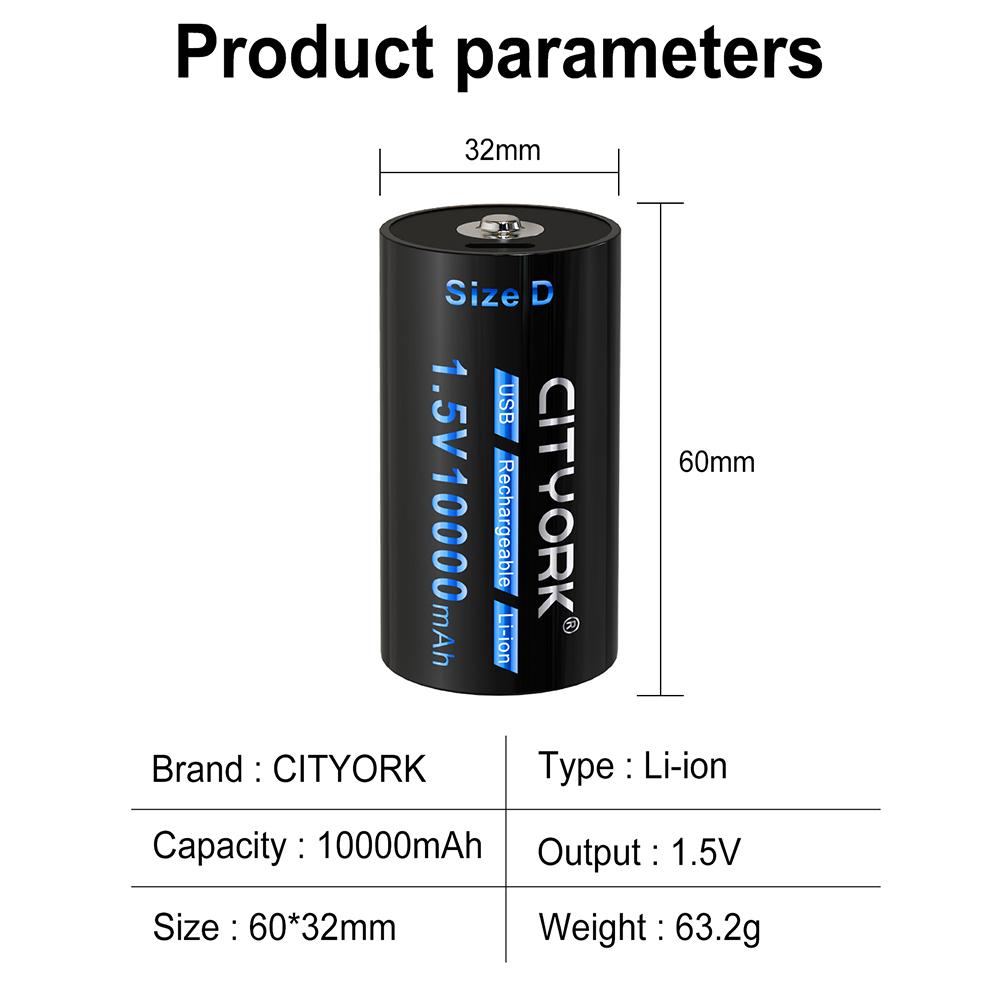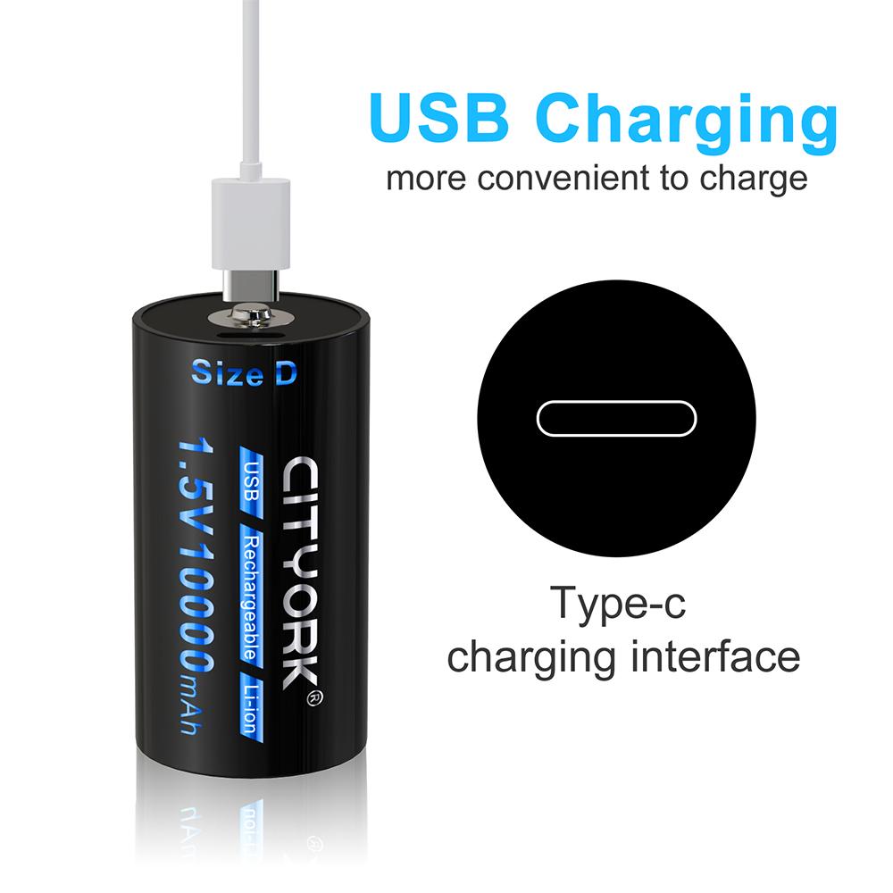 Cityork Литий-ионная аккумуляторная батарея размером 1,5VD, тип D, зарядка через USB, литиевая батарея R20 LR20 для газовой плиты, радиоуправляемого дрона