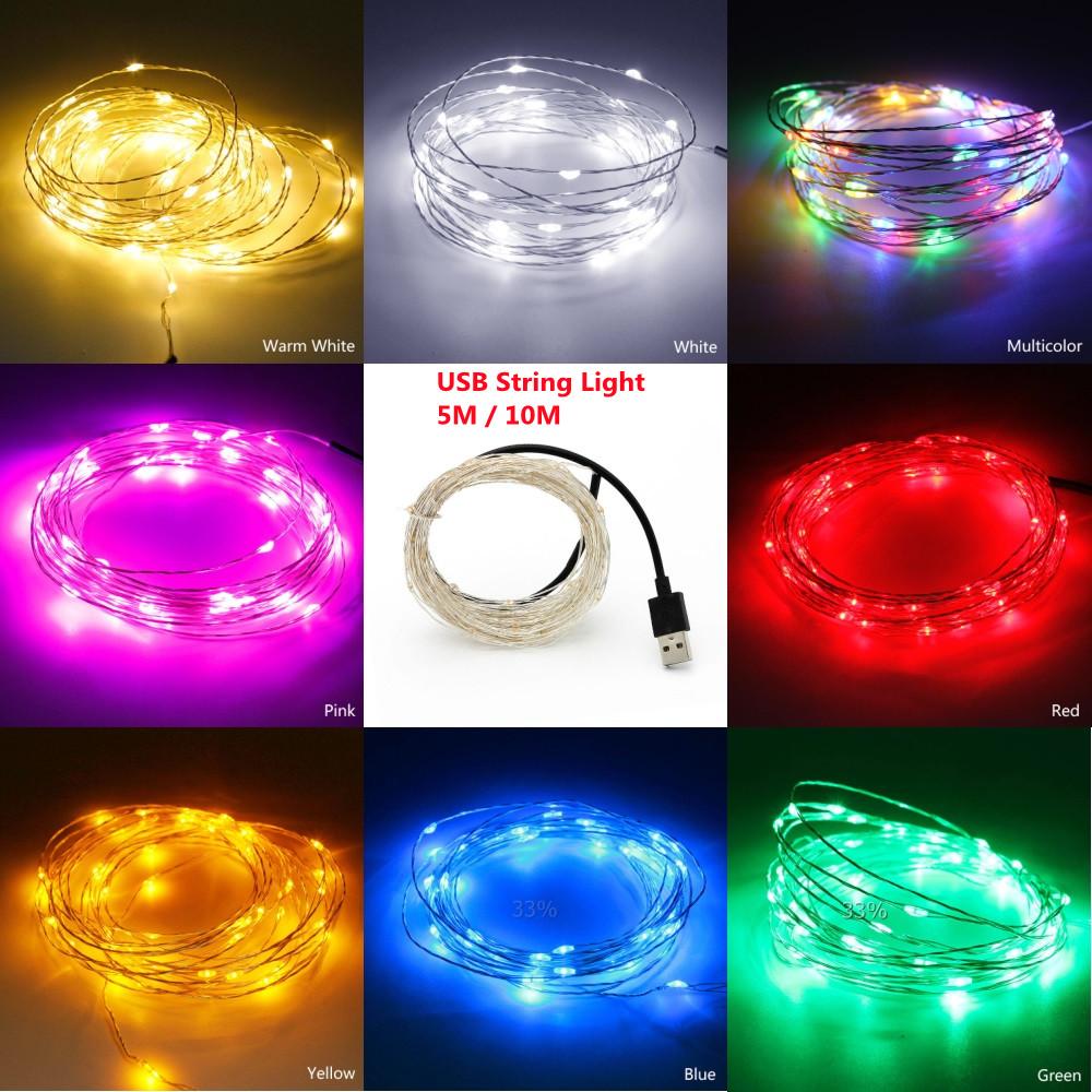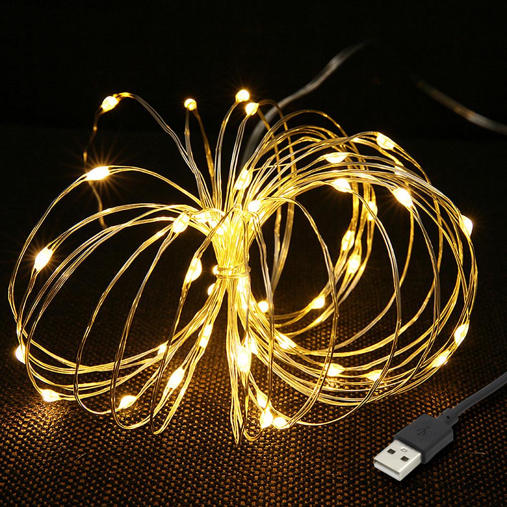 1 шт., светодиодные гирлянды с питанием от USB, 5 м, 50 светодиодов/10 м, 100 светодиодов, серебряная проволока, сказочная гирлянда на Новый год, свадьбу, Рождество, праздник, подарок