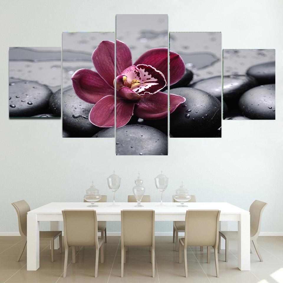 5 панелей пейзаж орхидея черная галька холст картины постеры и принты настенные художественные фотографии гостиная домашний декор без рамки — купить товар онлайн с бесплатной доставкой по всему миру!