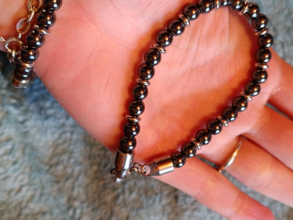 Красивый и добротный браслет!! С застежкой из медицинской стали!!! Спасибо продавцу это уже третий такой браслет, с разными бусинами покупаю, очень довольна!!!!