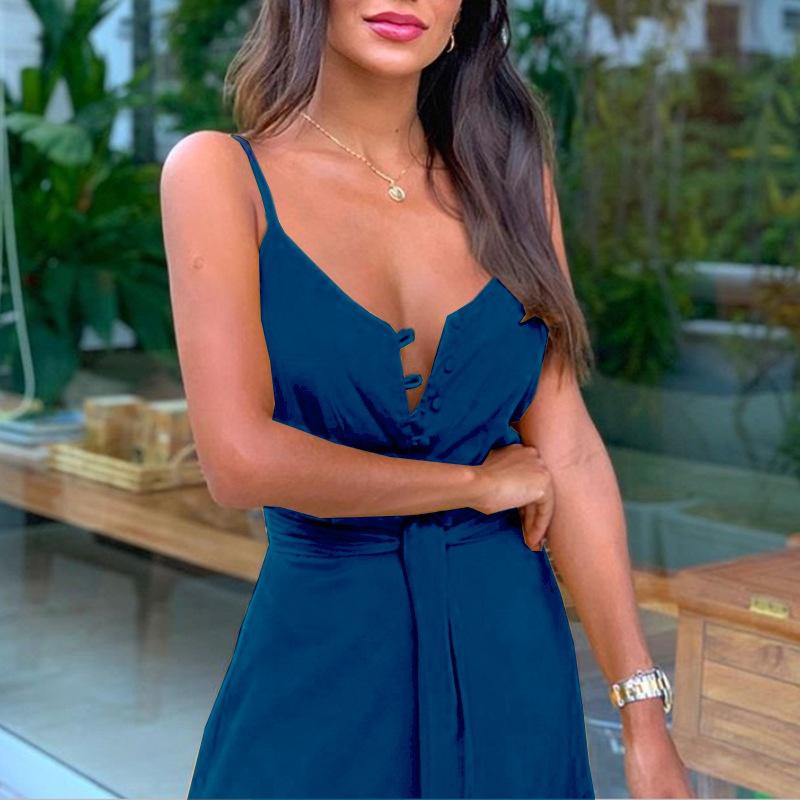 Летнее модное темпераментное однотонное женское платье на пуговицах с v-образным вырезом без рукавов на подтяжках