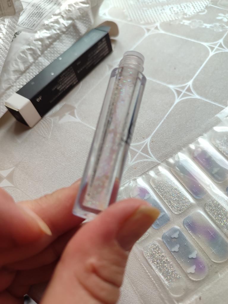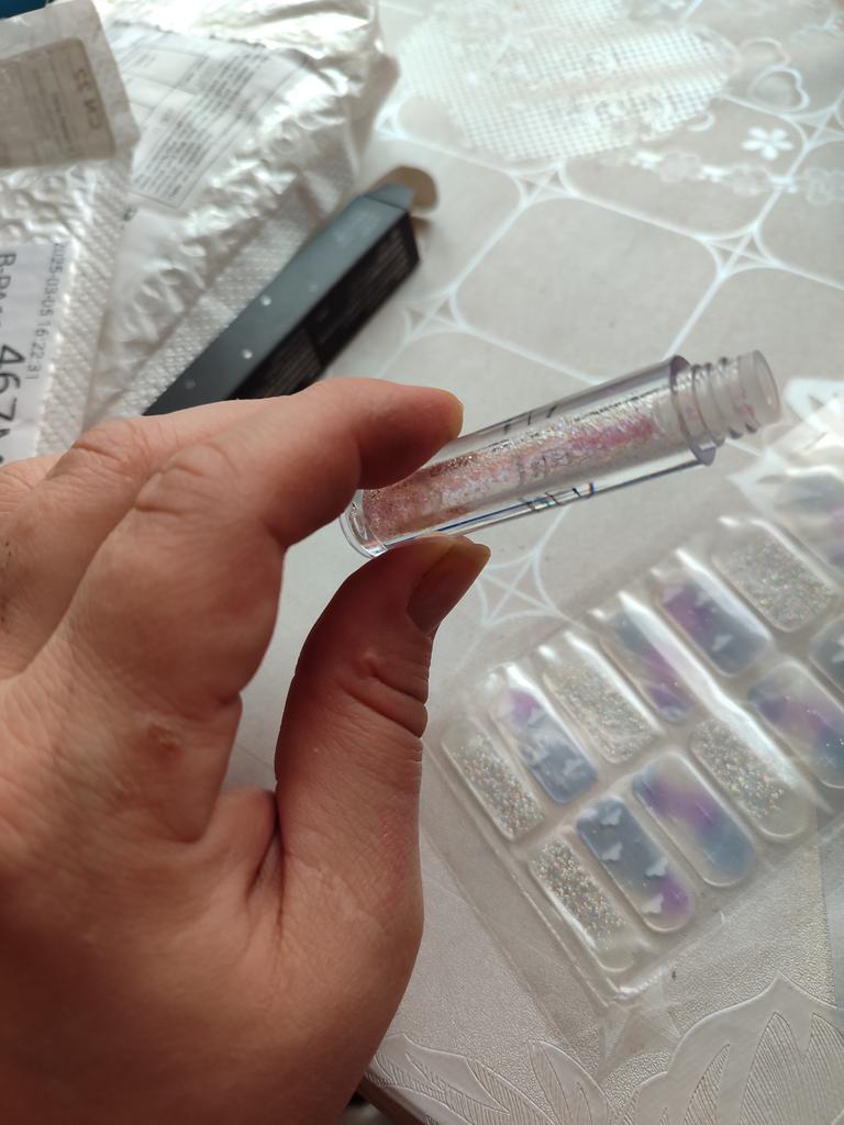 Блеск просто супер.На кожу ложится очень мягко.Долго не осыпается и очень красиво переливается.И что не маловажно не оставляет следов нанесения а просто чарующе мерцает.Пришел товар довольно быстро хорошо упакован.Прошу меня простить фото приложить не могу это был подарок но выше написанное полностью соответствует действительности.Уже опробовали на выпускной бал блеск просто супер.