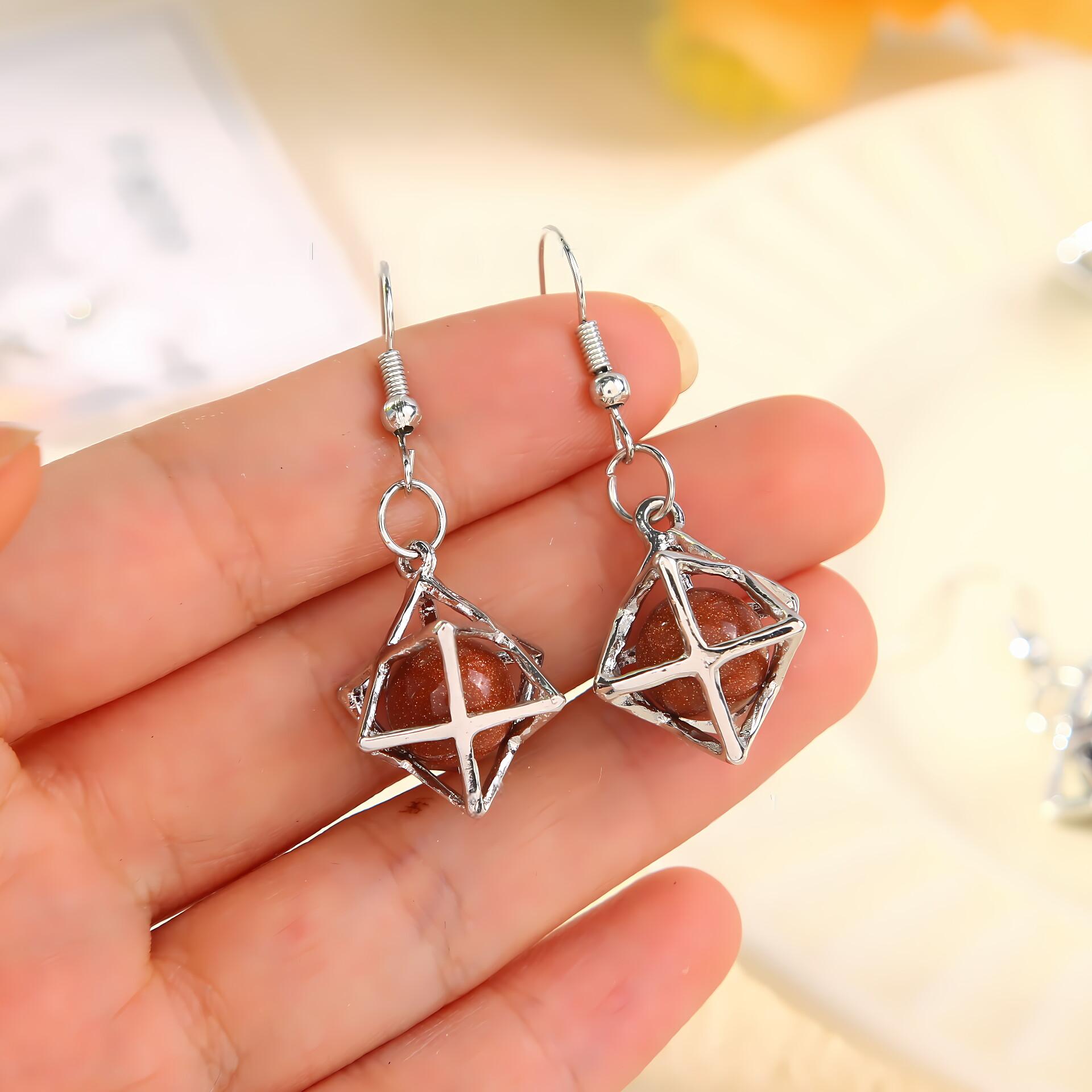 Серьги Melcaba Jewelry полые шестиконечные звезды клетка натуральный кристалл преувеличенные серьги женские серьги