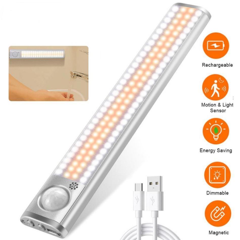 Новый беспроводной светильник под шкафом, светодиодный датчик движения, лампа для шкафа, 80/120/160 светодиодов, перезаряжаемая от USB, для кухни, спальни, шкафа — купить товар онлайн с бесплатной доставкой по всему миру!