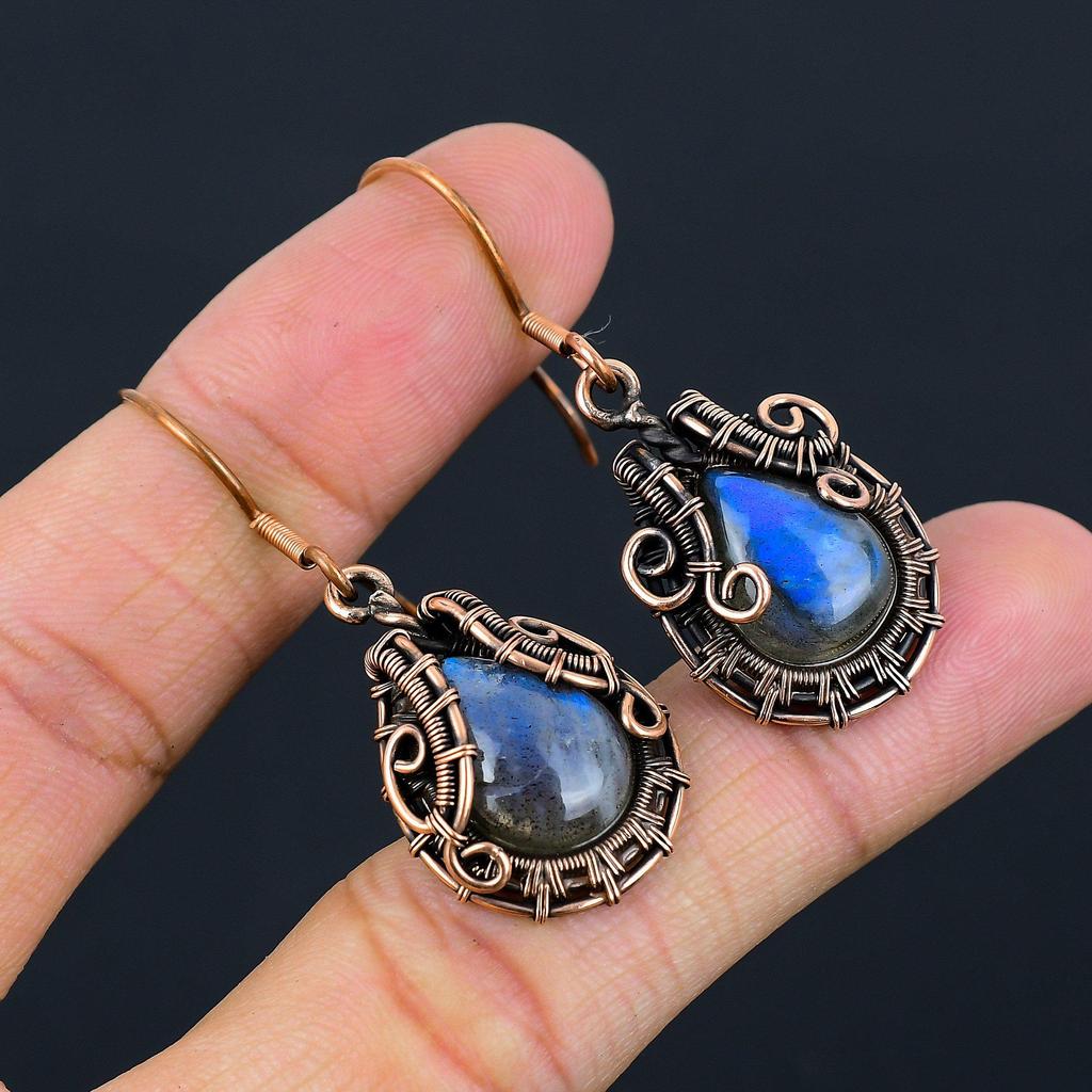 Серьги ручной работы красивой драгоценной камня лабрадорита в оболочке из чистой медной проволоки для подарка — купить товар онлайн с бесплатной доставкой по всему миру!