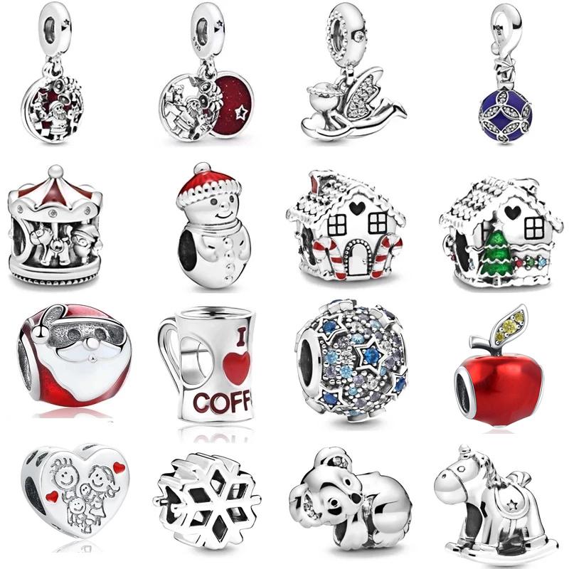 Новый Рождественский домик Снеговик Санта-шарм из бисера подходит оригинальные подвески Серебряный браслет 925 пробы для женщин DIY Изготовление ювелирных изделий
