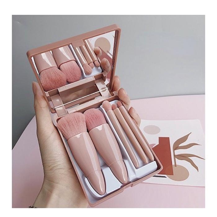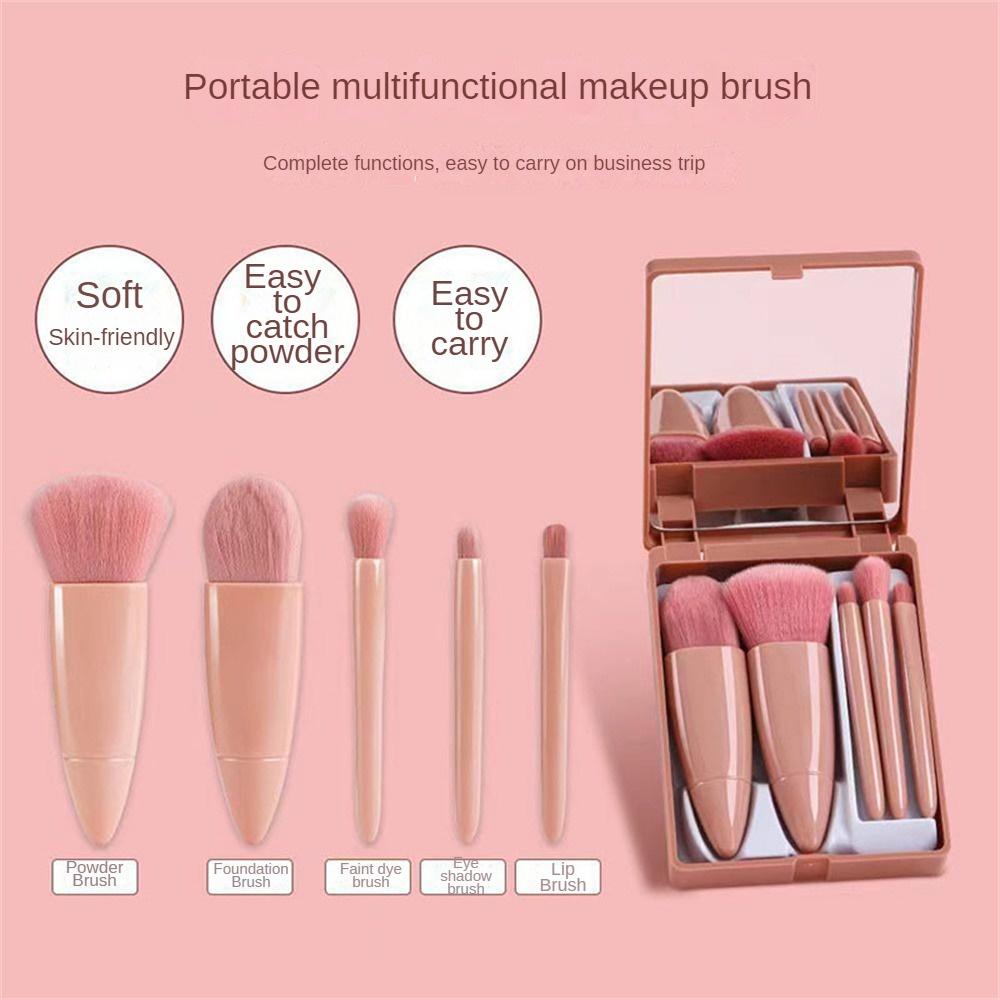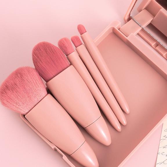5 с зеркалом для макияжа, набор кистей для макияжа с розовым сердцем для девочек, мини-портативная система цветов Morandi, кисточка для макияжа в штучной упаковке, инструмент для красоты